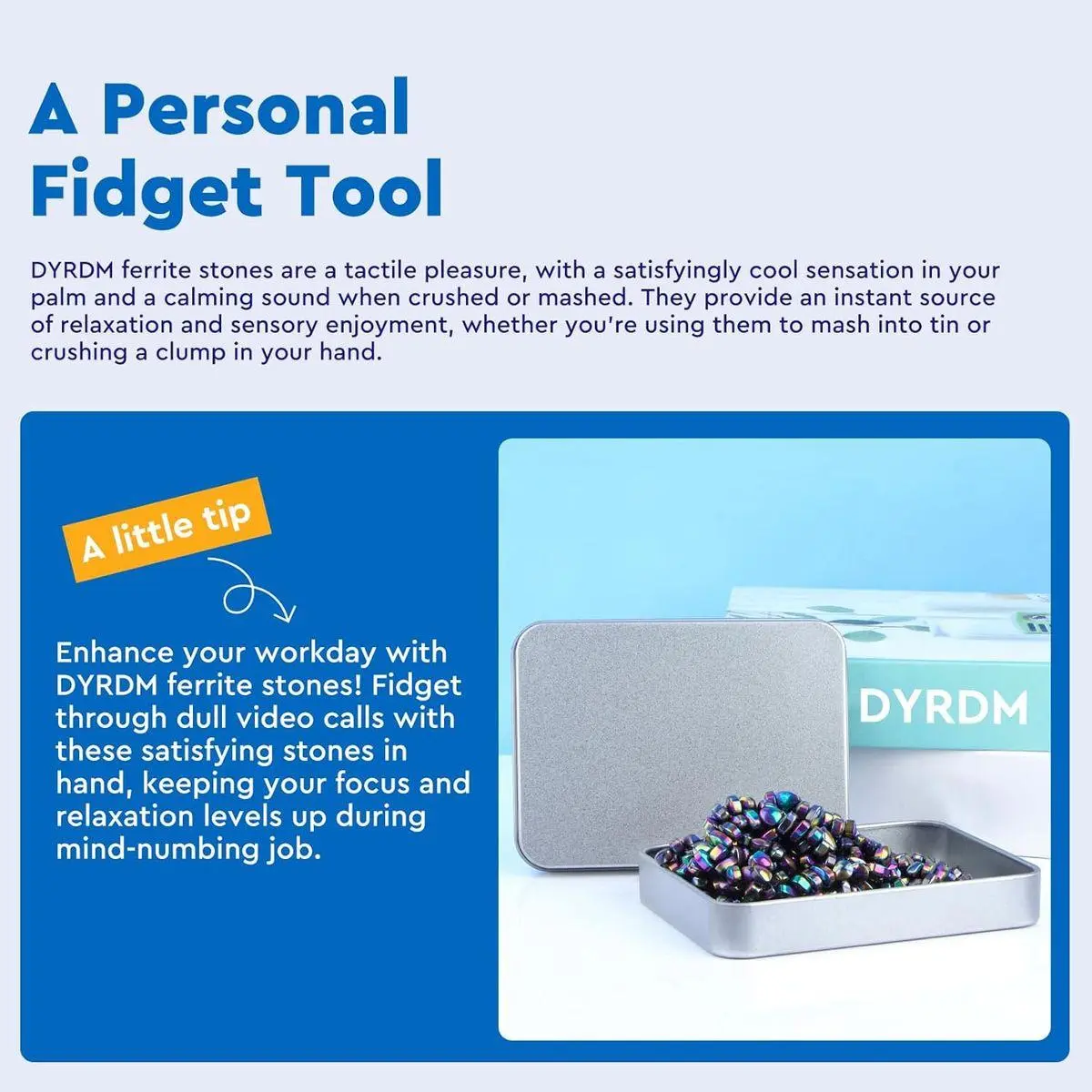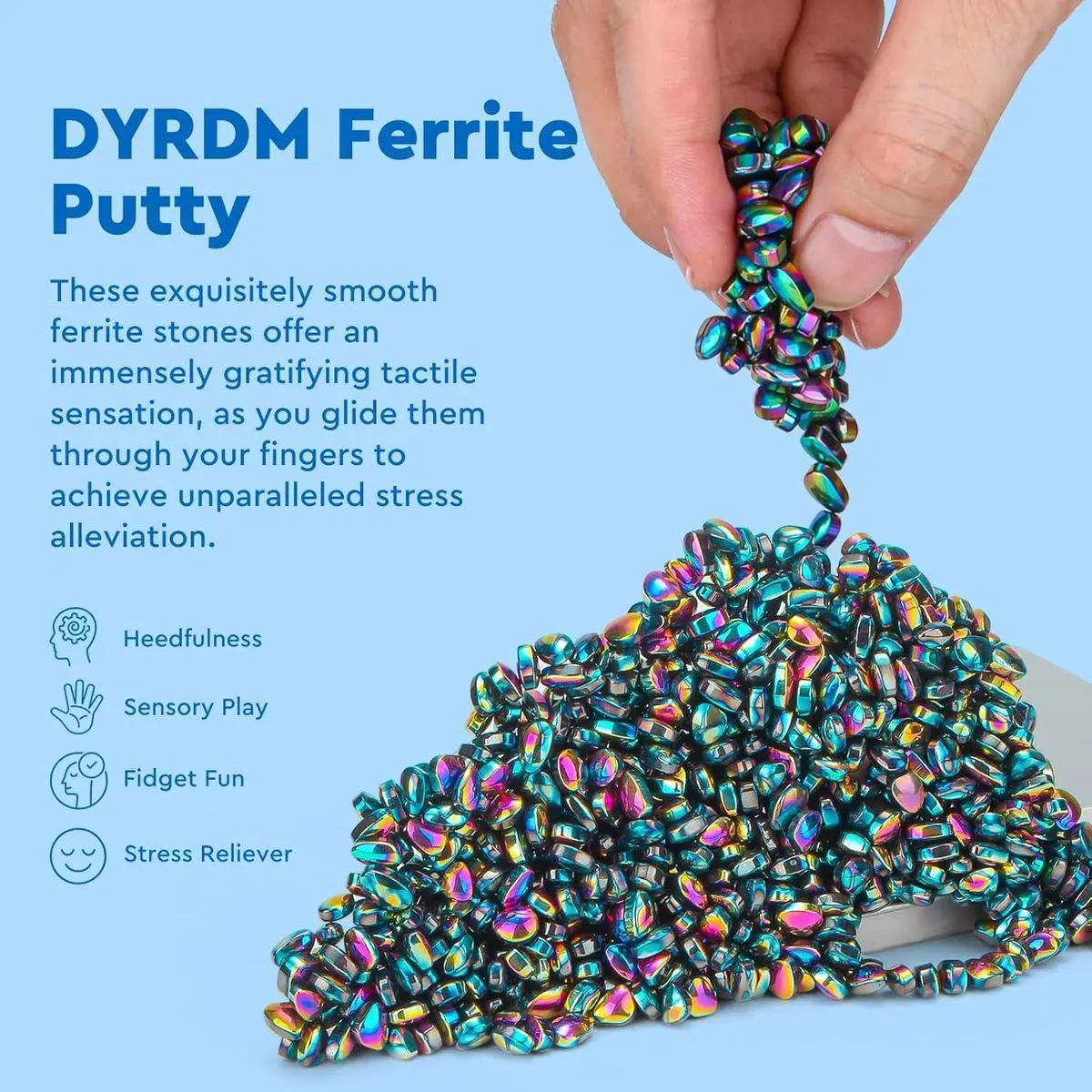 1. ENJOYABLE DESKTOP EXPERIENCE:DYRDM ferrite stones provide a tactile and satisfying experience. Manipulate and move the putty with your hands to relieve stress and stay focused during work.