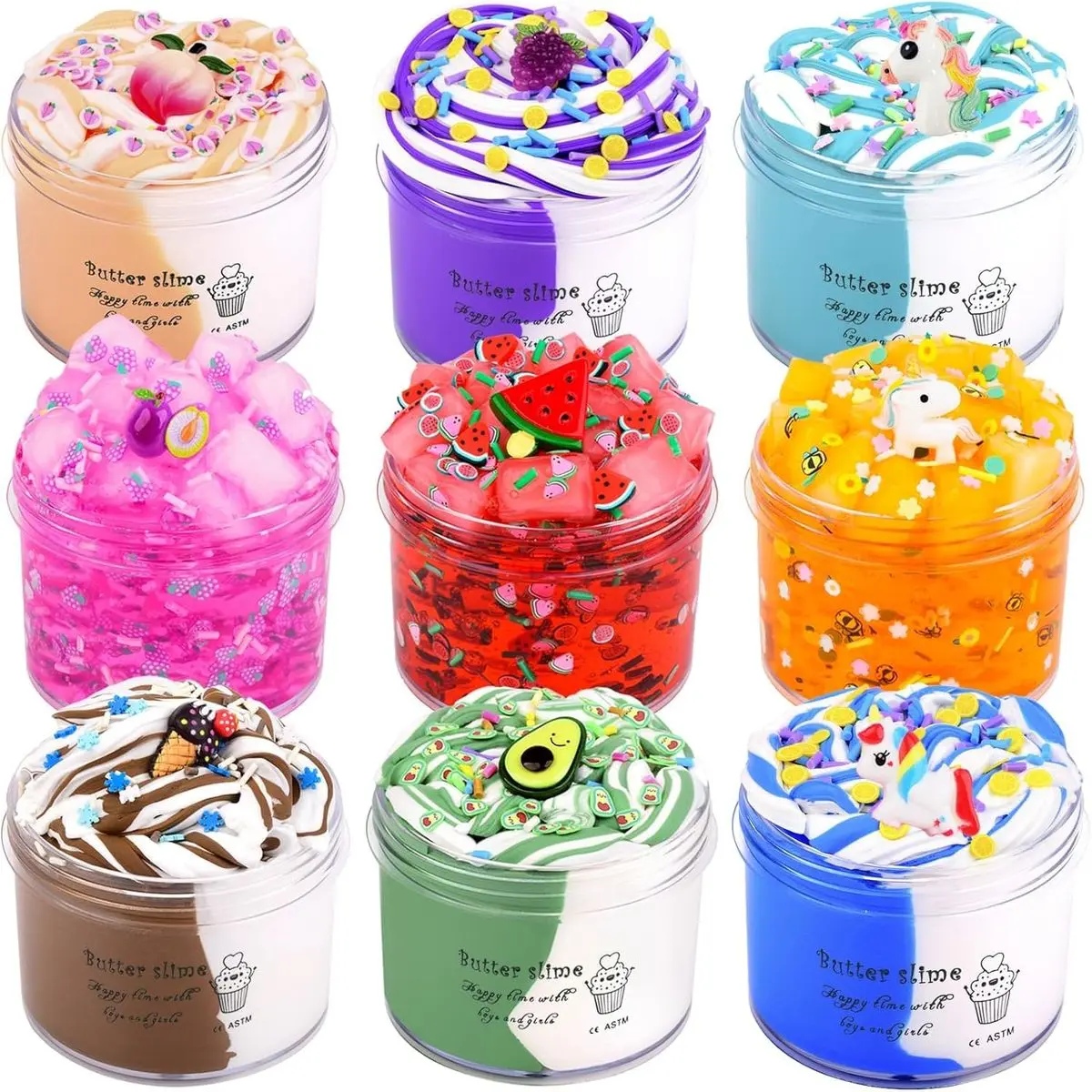 🎁 9 Pack Slime Kit: with 3Jelly Cube Crunchy Slime and 3 Cloud Slime and 3 Butter Slime, The charm for slime is incredibly satisfying to play with - Squishy texture, This pre made, mess free, non sticky slime is perfect for stress relief or magical play anytime, anywhere.