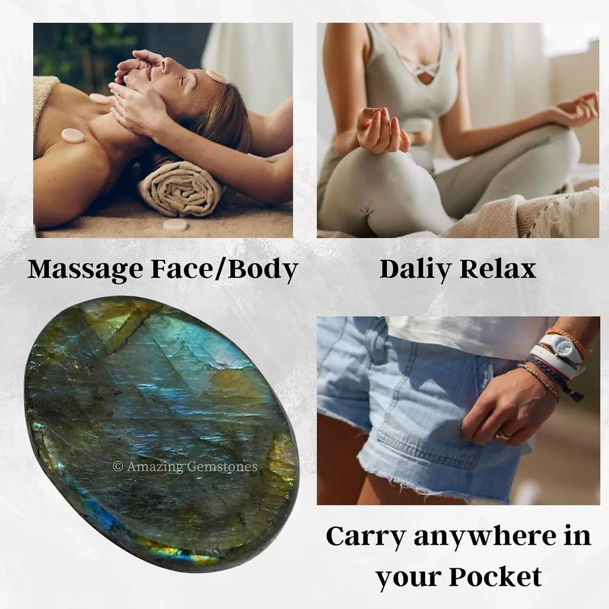 Premium Quality Crystals and Healing Stones : Our Labradorite Worry Stone is crafted from authentic labradorite crystals and stones, making it a valuable addition to your collection of meditation accessories and reiki supplies for optimal energy alignment.