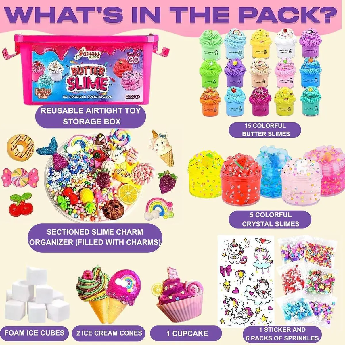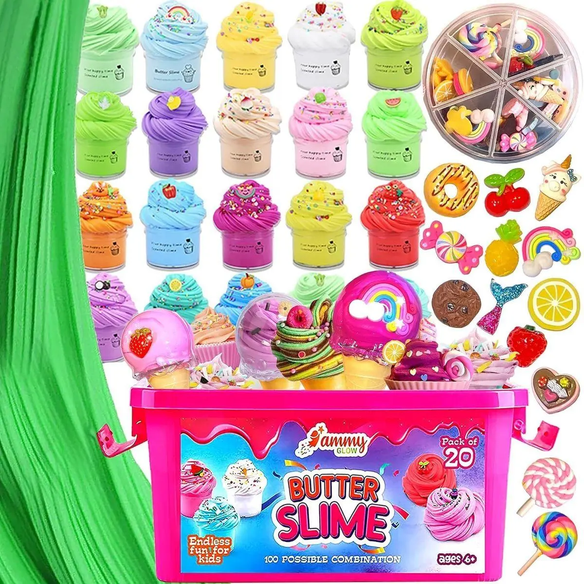 20 Pack Slime for Kids with Accessories – Perfect Easter Basket Stuffers: Includes 15 butter slimes and 5 crystal slimes with fun slime add-ins like charms, sprinkles, and more. Ammy Glow slime kits make exciting Easter basket filler, ideal for slime party favors and hands-on fun.
