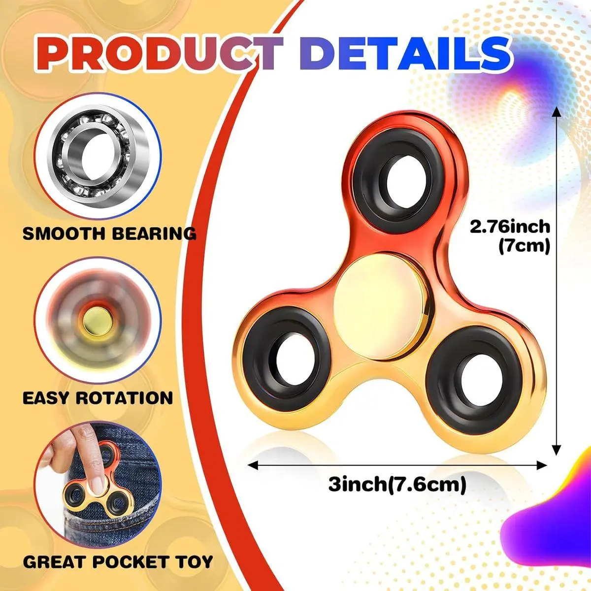 HIGH SPEED STAINLESS STEEL BEARINGS: fidget toys are positioned at the center to ensure ultra-smooth rotation and consistent performance. Equipped with stainless steel bearings to enhance centripetal force and extend spin time. All bearings are removable for easy maintenance or future upgrades.