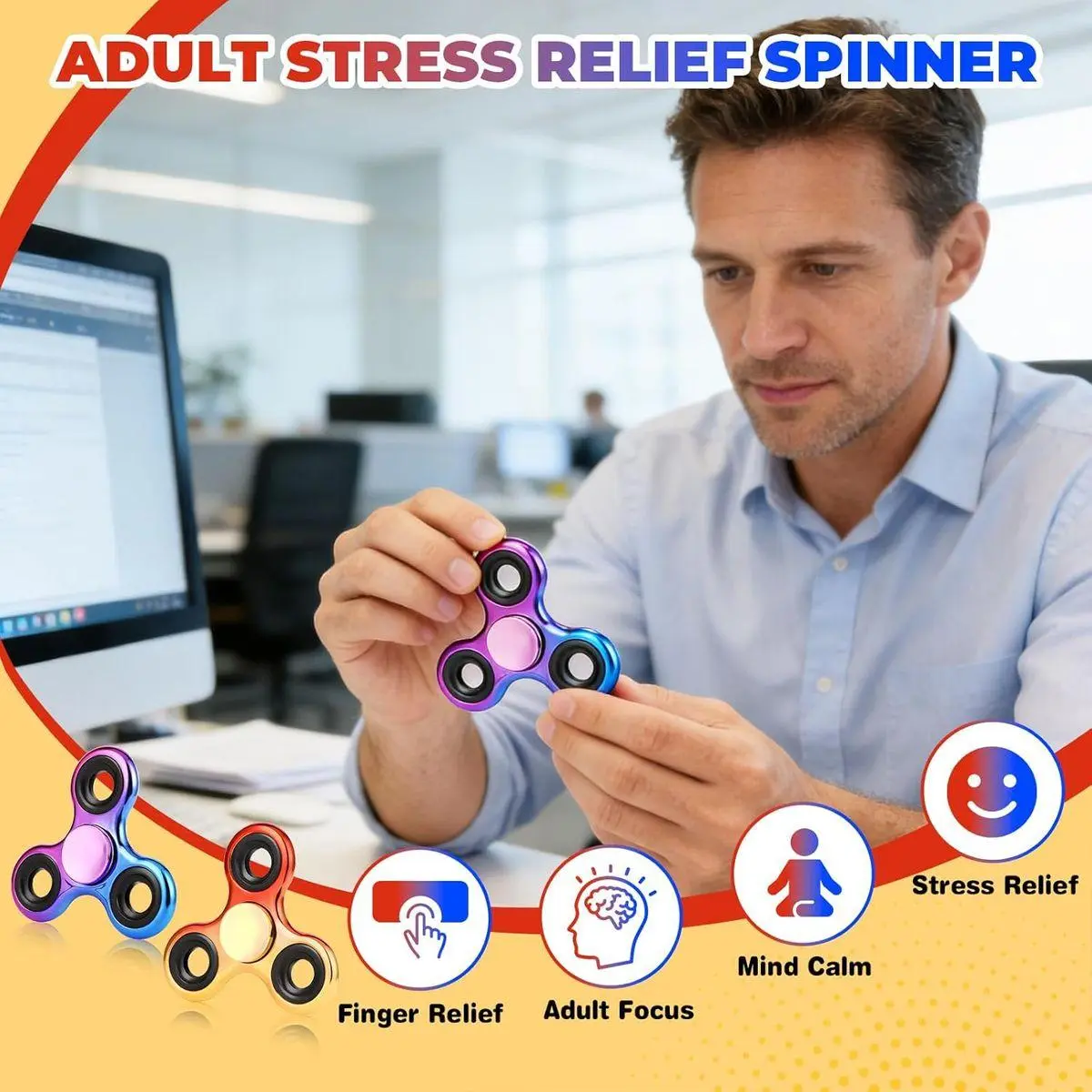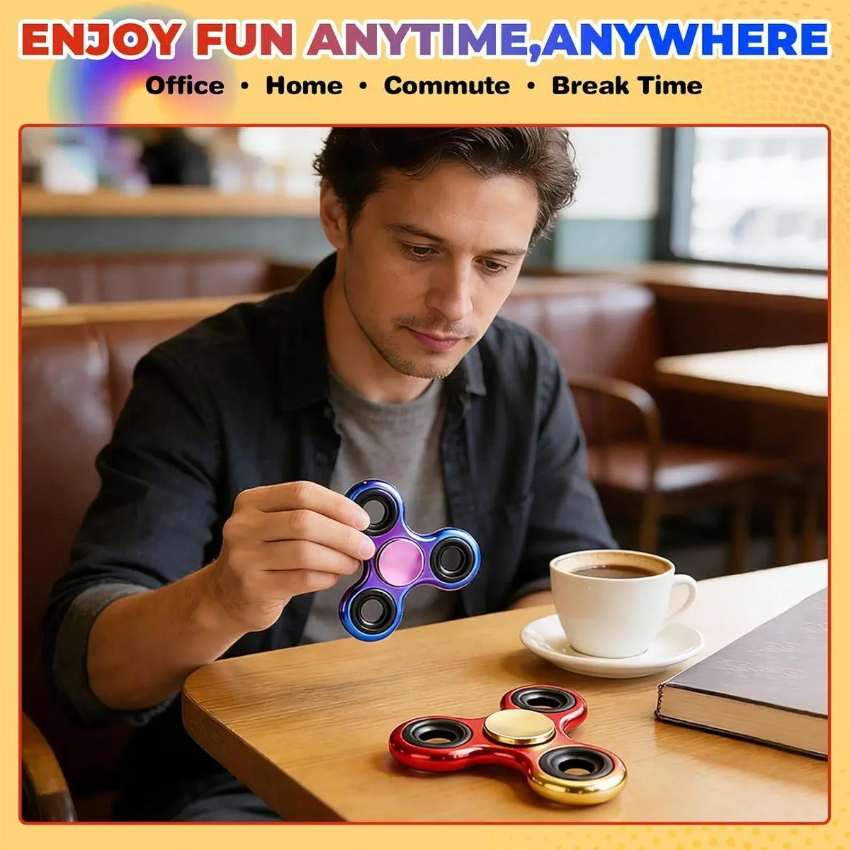 EASY TO PLAY: To spin the ADHD fidget spinner, just hold either side of the center with one finger, and then with your other hand spinner. Through practicing, the spinner can only be used with one hand. To use the anxiety toy on the table, simply press the center to keep it stable and spin at the same time. Once you let go, the fidget spinner will continue to spin.