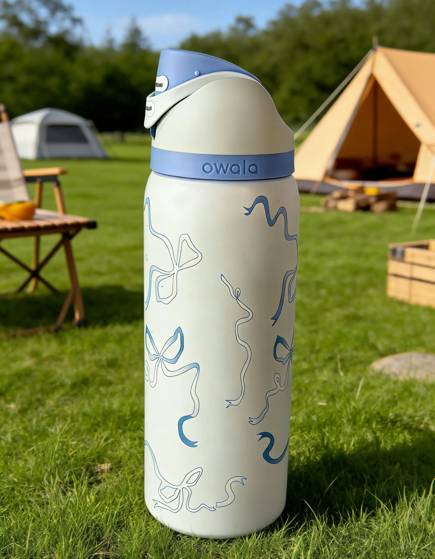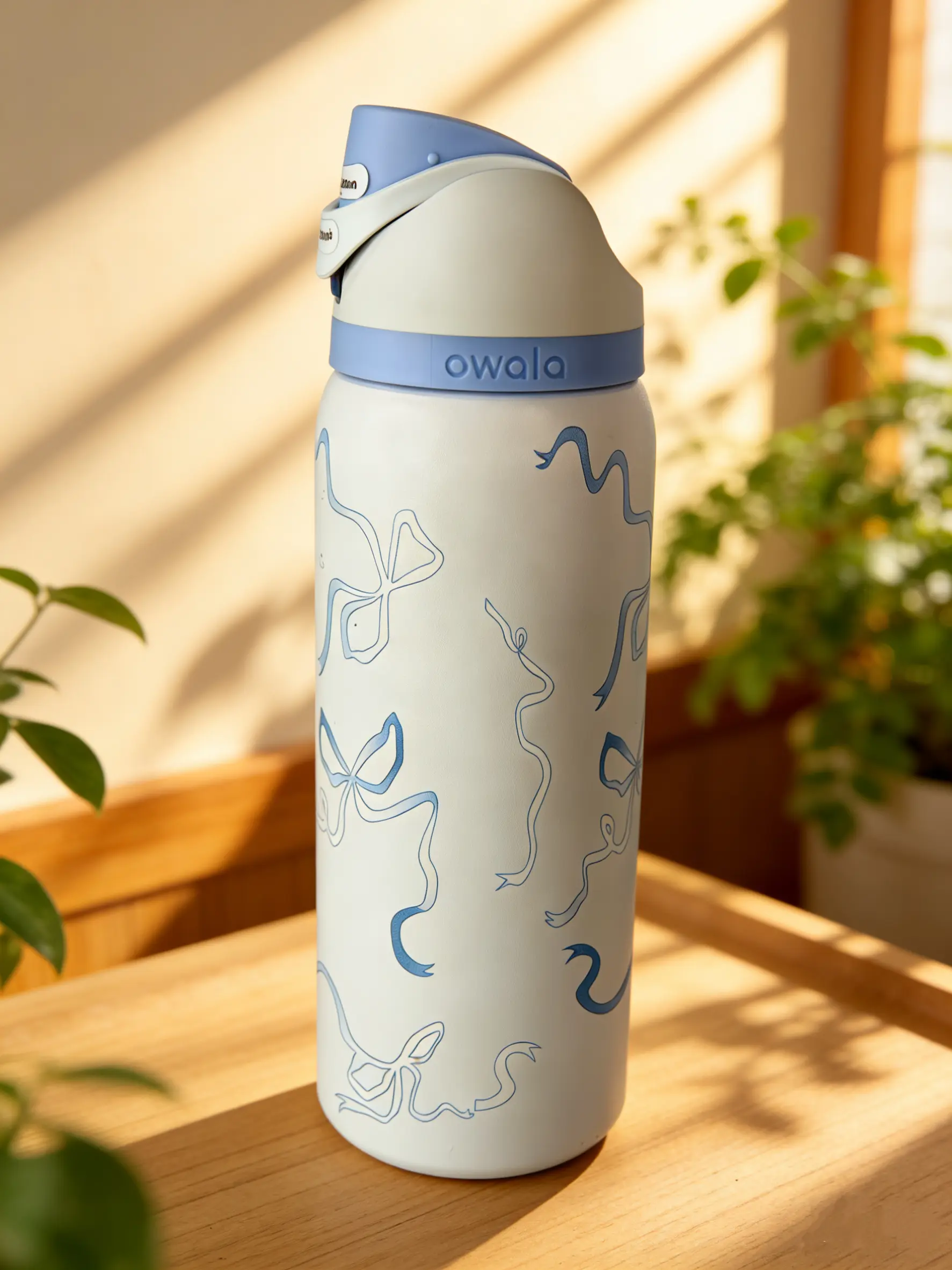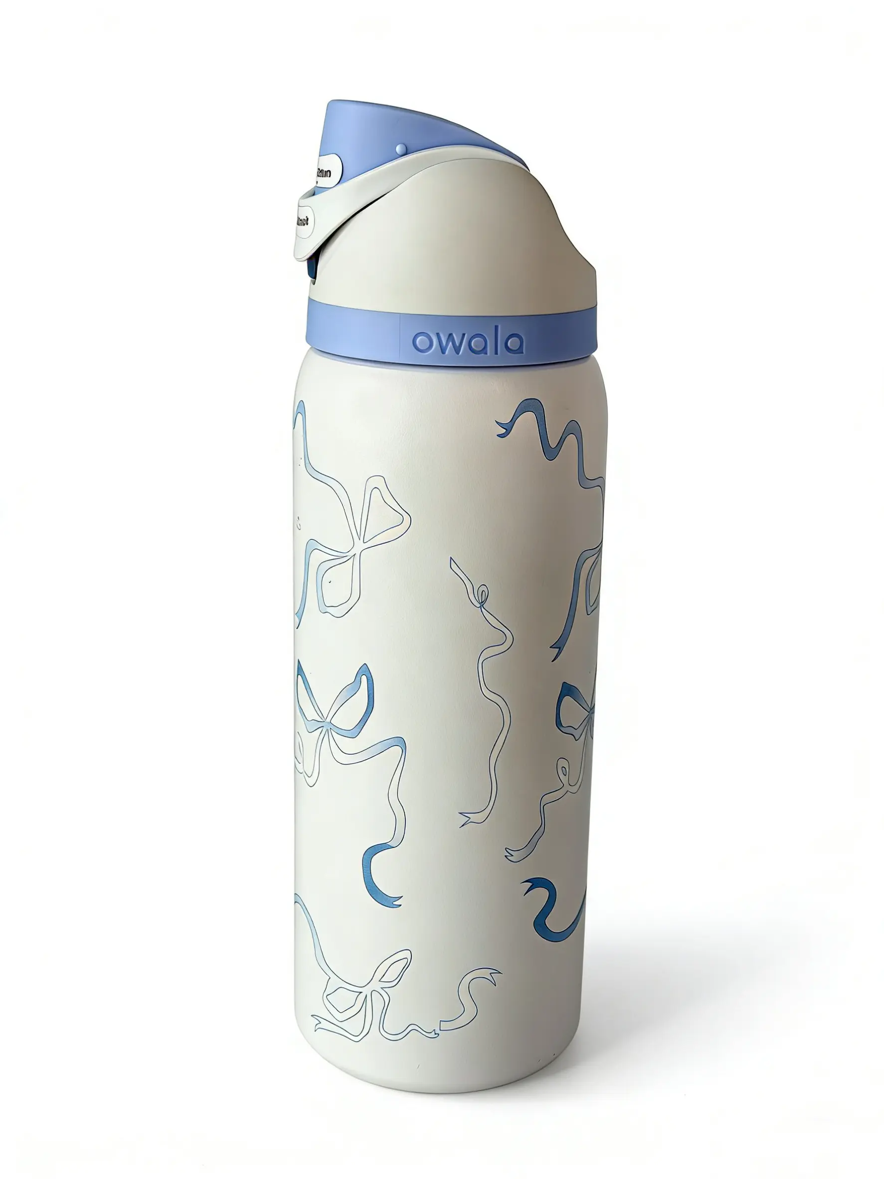 ✨ This Owala 32oz water bottle features a cute blue bow design, making it a stylish choice for everyday use. Crafted from insulated stainless steel, it keeps your drinks cold for 24 hours. The leak-proof design ensures no spills, and the included straw adds convenience. Perfect for on-the-go hydration.