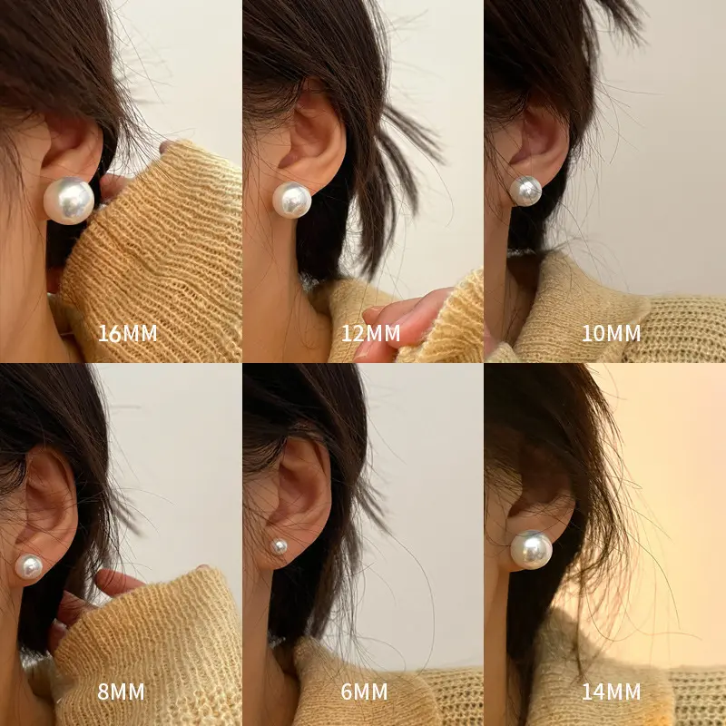 Made of 925 sterling silver, these earrings feature shiny pearls in various sizes: 6MM, 8MM, 10MM, 12MM, 14MM, and 16MM. Choose the size that suits your style. The pearls add a touch of elegance to any outfit.