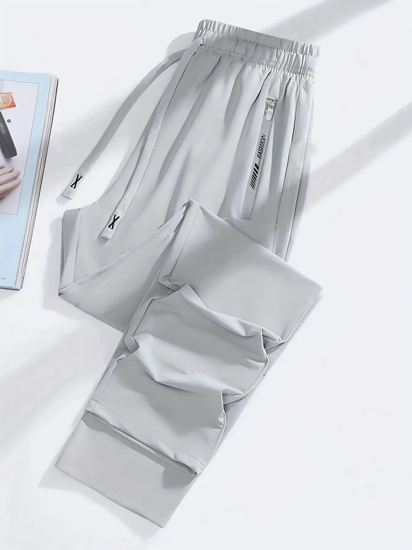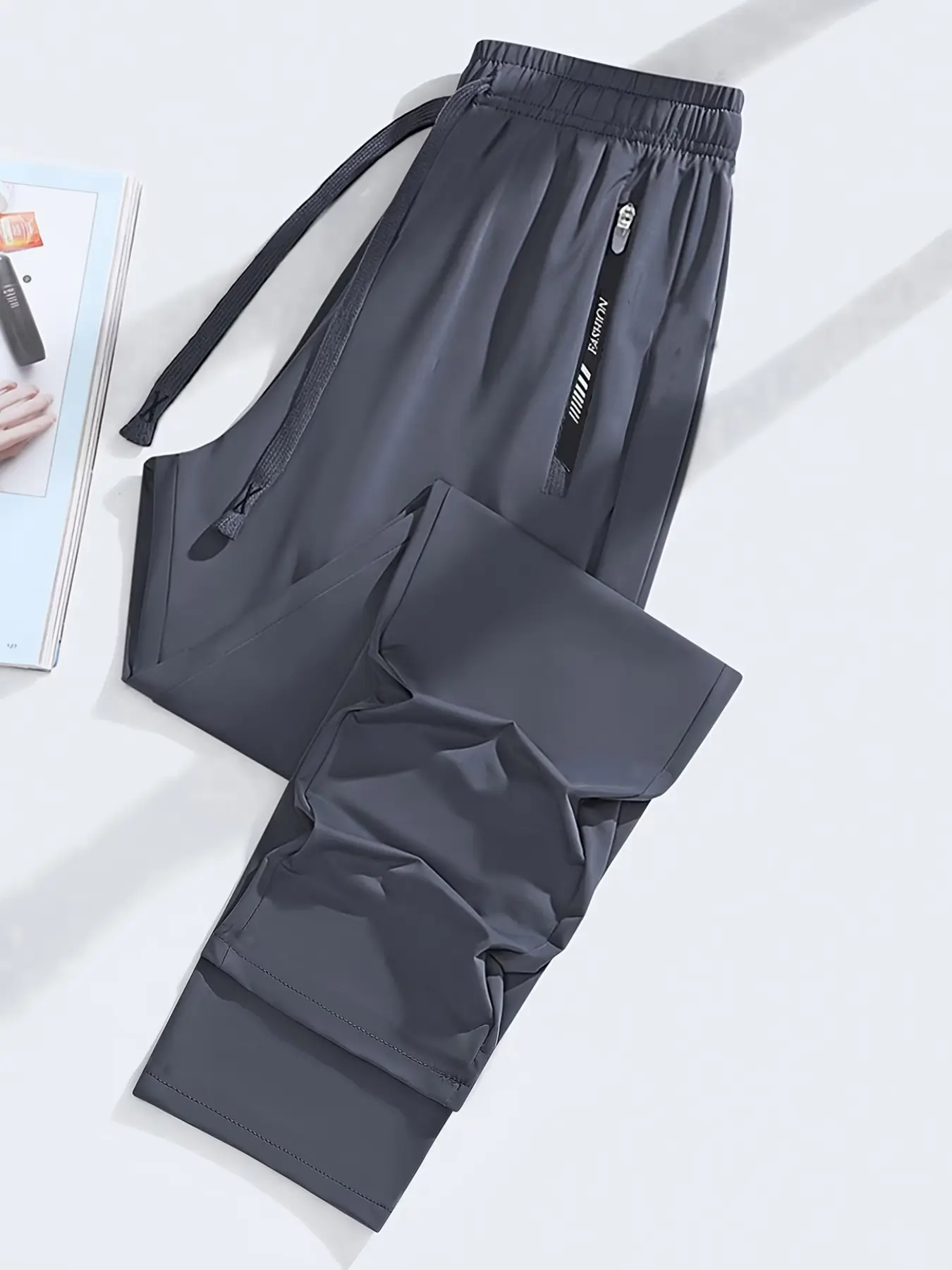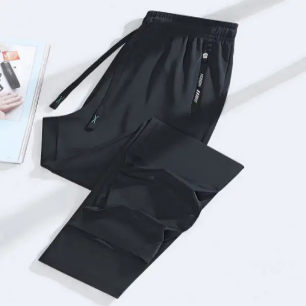 Summer ice silk quick-dry casual pants! Cool and breathable, no sweaty feeling; elastic waistband plus zippered pockets—suitable for workouts and commuting, versatile and flattering on everyone; one piece covers your entire summer outfit!