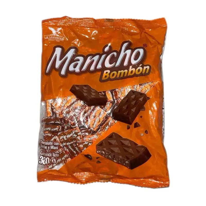 Manicho Bombón 380g Milk Chocolate with Peanut - 100 units. Ideal for Snacking and Dessert - Perfect Treat for Chocolate Lovers