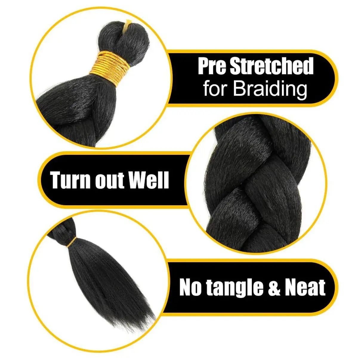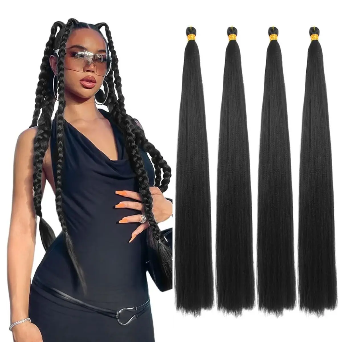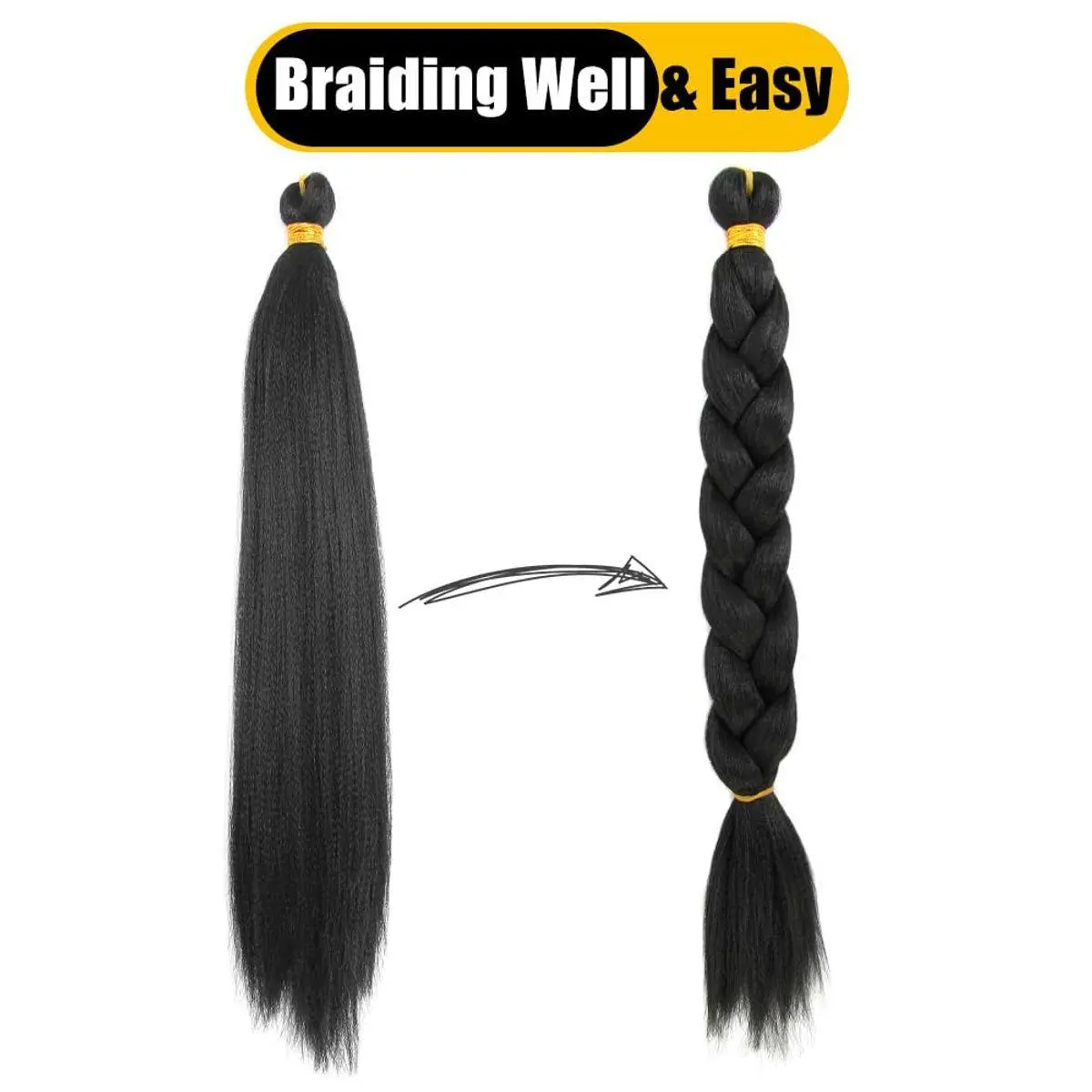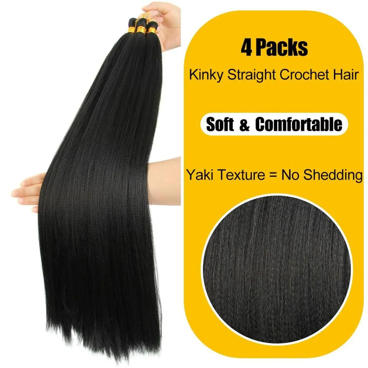 Premium Kinky Straight Texture: Soft synthetic yaki texture mimics natural kinky-yaki bone straight hair for a realistic and elegant look that blends seamlessly with your own hair
