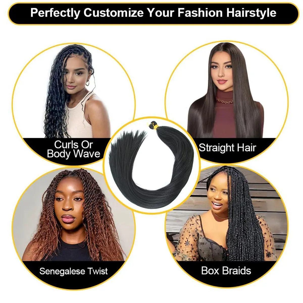 Complete 4 Bundle Set: Package includes 4 bundles of natural black crochet hair, providing ample coverage for full head installation and versatile styling options