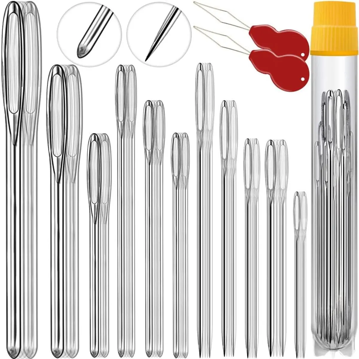 High-Quality Material: Our needles are made of high-quality steel and come in 11 different sizes, including six blunt-point needles and five sharp-point needles. These needles are sturdy and resistant to bending, rust, and corrosion, making them very easy to use. The blunt-point needles are perfect for knitting and seaming, while the sharp-point needles are ideal for sewing and embroidery. Their smooth surface ensures less resistance when passing through fabric, making them easier to penetrate.