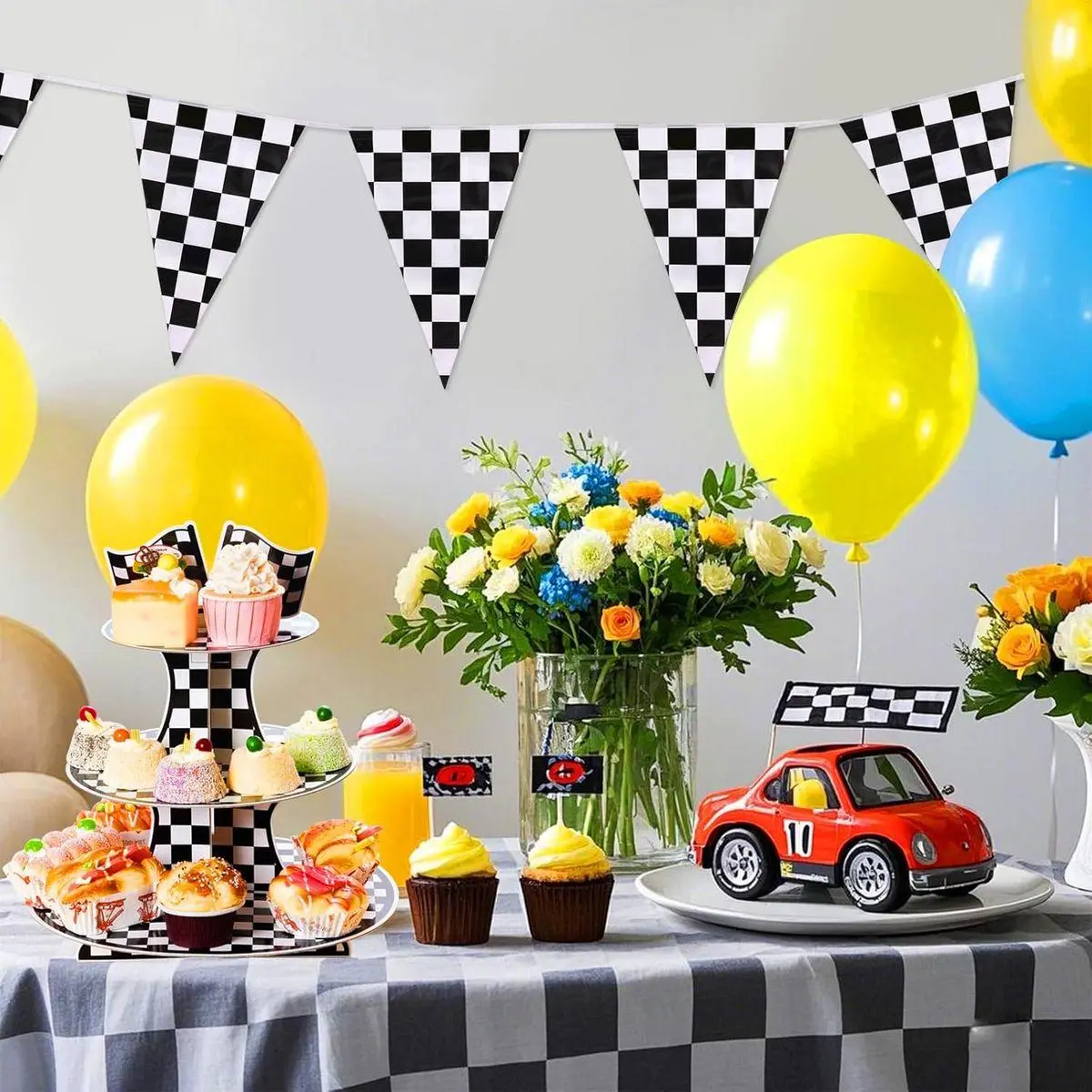 Durable and High-Quality Material: Crafted from sturdy and weather-resistant materials, this checkered pennant racing banner is designed to last through indoor and outdoor use, ensuring your race car themed party decorations remain vibrant and intact throughout the festivities