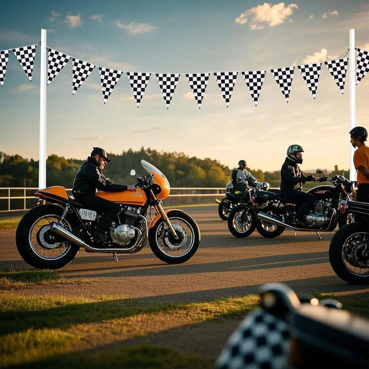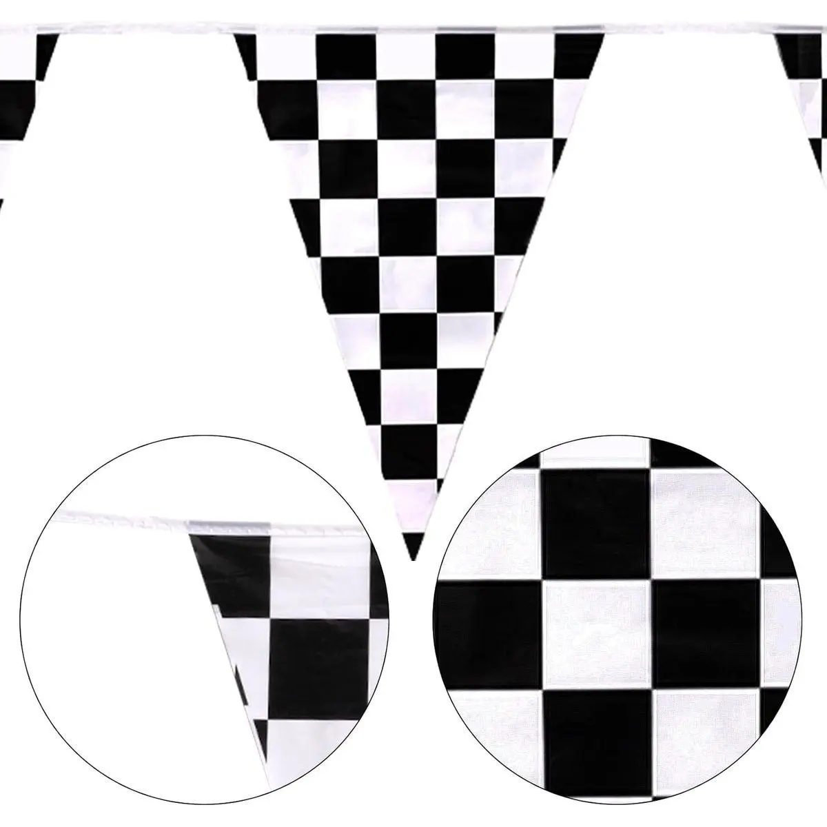 Vibrant Race Car Theme: This 100Ft Checkered Flag Banner brings the excitement of race day to any event with its bold black and white checkered pattern, perfectly capturing the essence of race car party decorations for an unforgettable birthday celebration or themed event