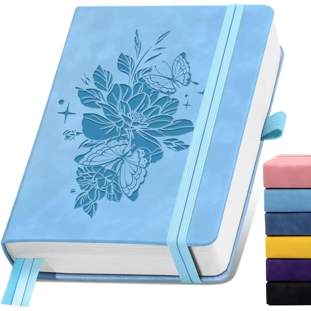 【Practical Journal Notebook Design】The elastic pen holder ensures you never lose track of your pen, and the two elastic closures ensure your journal stays securely closed; The three bookmarks and inner pocket allow you to mark important pages easily and store small notes or keepsakes.