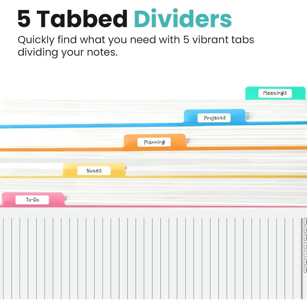 5 Subject Notebook with Dividers & Tabs: Stay organized with this 5 subject notebook, featuring 5 removable plastic dividers with tabs and 10 self-adhesive labels. These writable tabs make it easy to customize and categorize your notes for different subjects or projects—perfect for both school supplies and work planning.