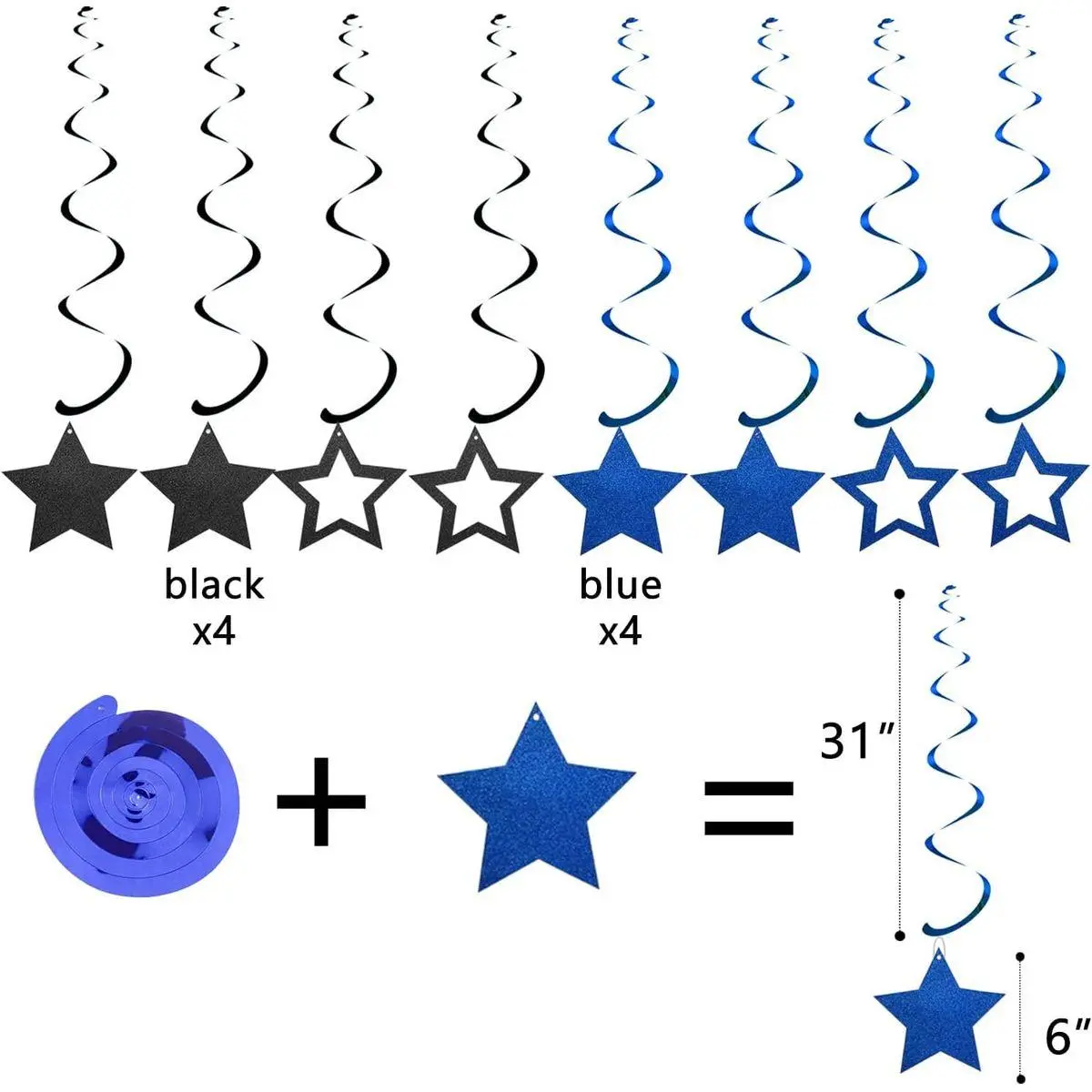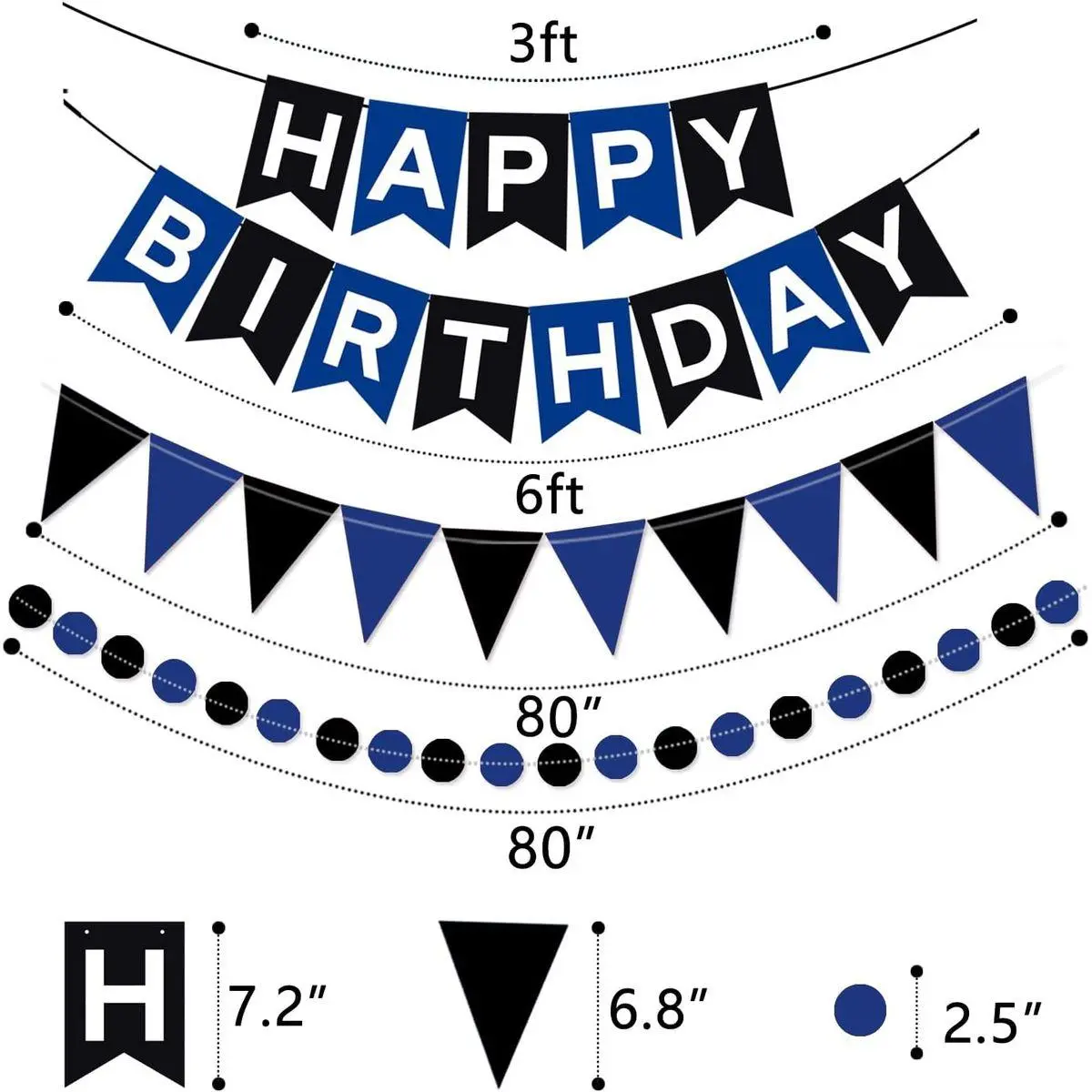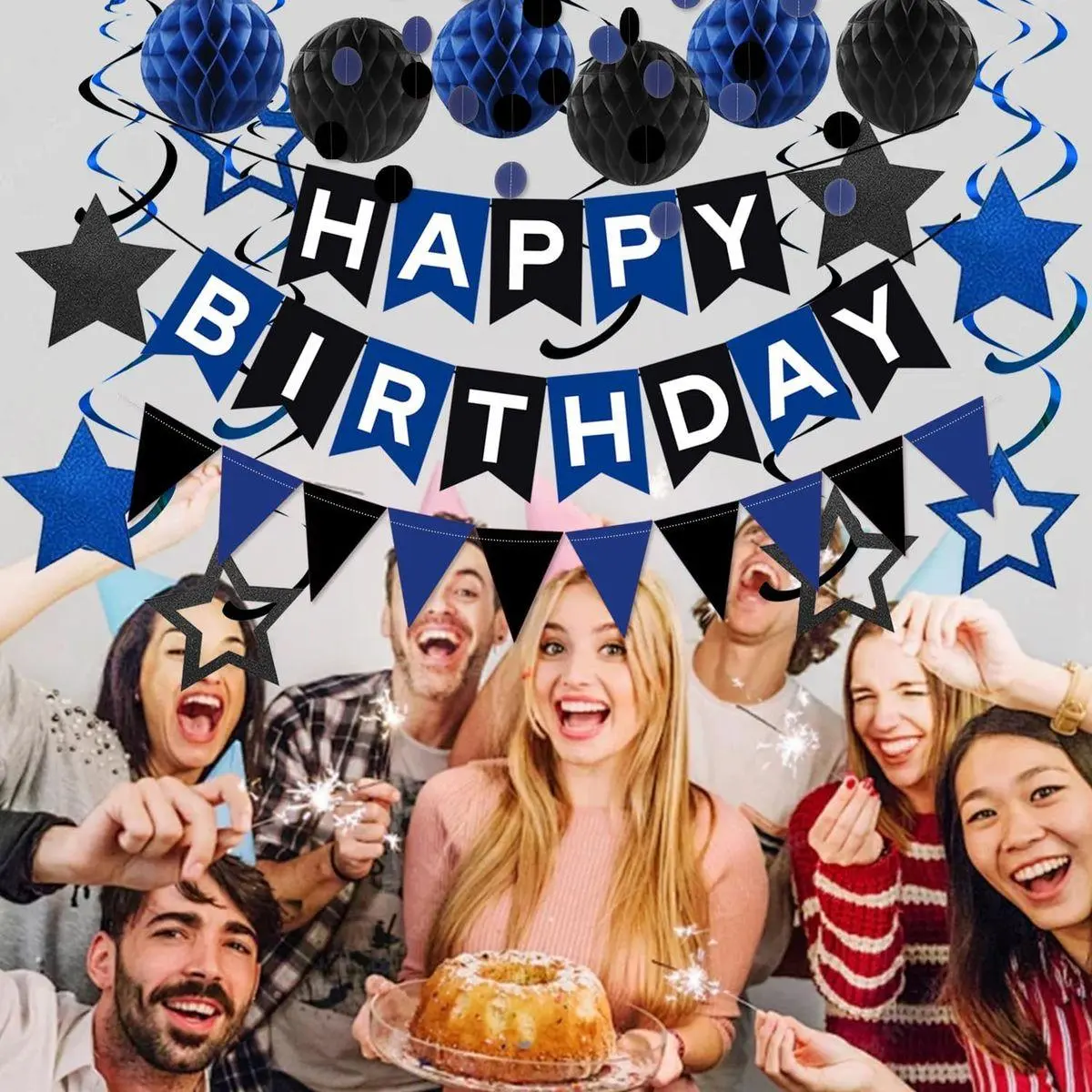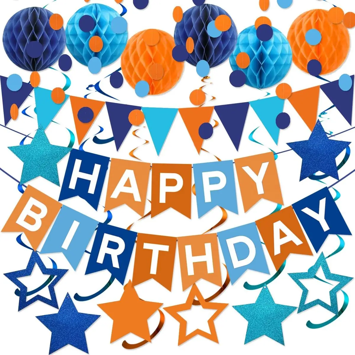 What you will get: 1 set "Happy Birthday" banner, 1 string circle dots, 1 string flag bunting banner, 6pcs honeycomb balls, 8pcs swirls streamers with stars.Only one package contains a wealth of decorative accessories, without the need for complicated assembly. With just a simple setup, you can create an ideal birthday party.