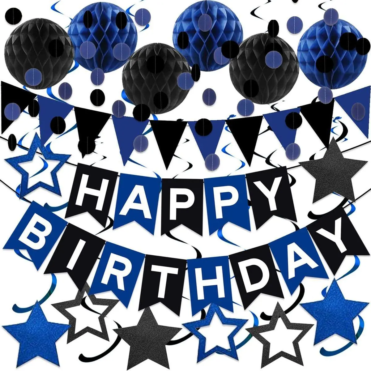 Included Components: 1 set 'Happy Birthday' banner, 1 string circle dots, 1 string flag bunting banner, 6pcs honeycomb balls, 8pcs swirls streamers with stars See more