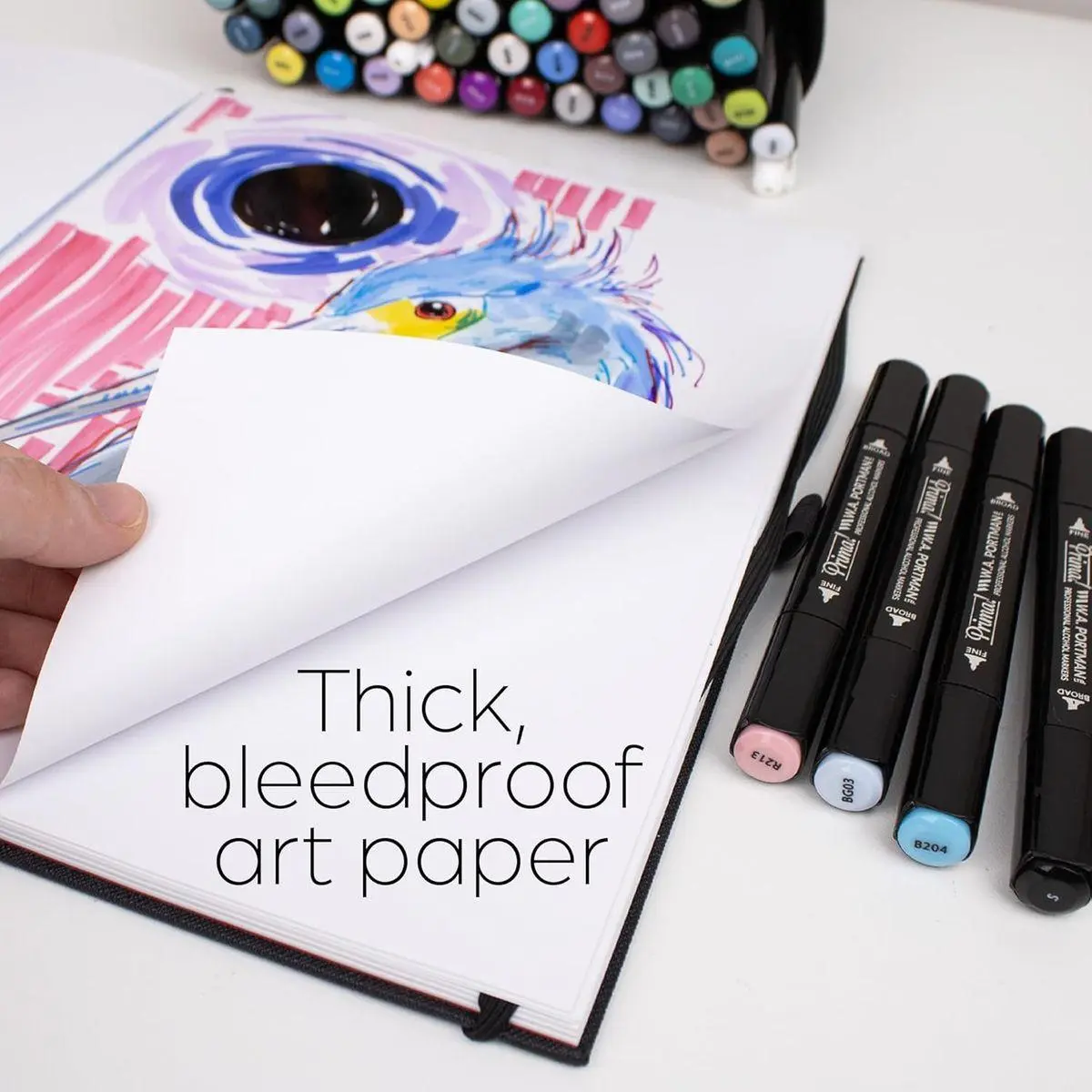Lay-Flat Design & Secure Binding Sketch Paper – The multimedia sketchbook for markers lies completely flat, providing a smooth, comfortable surface for sketching and blending. Its strong binding keeps pages secure during use. This alcohol marker sketchbook works beautifully with multiple mediums—also serving as an acrylic sketchbook with durable acrylic marker paper—making it an essential art sketchbook for every artist