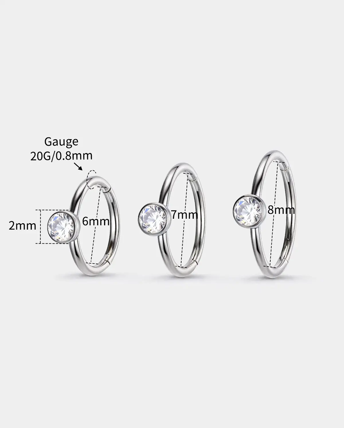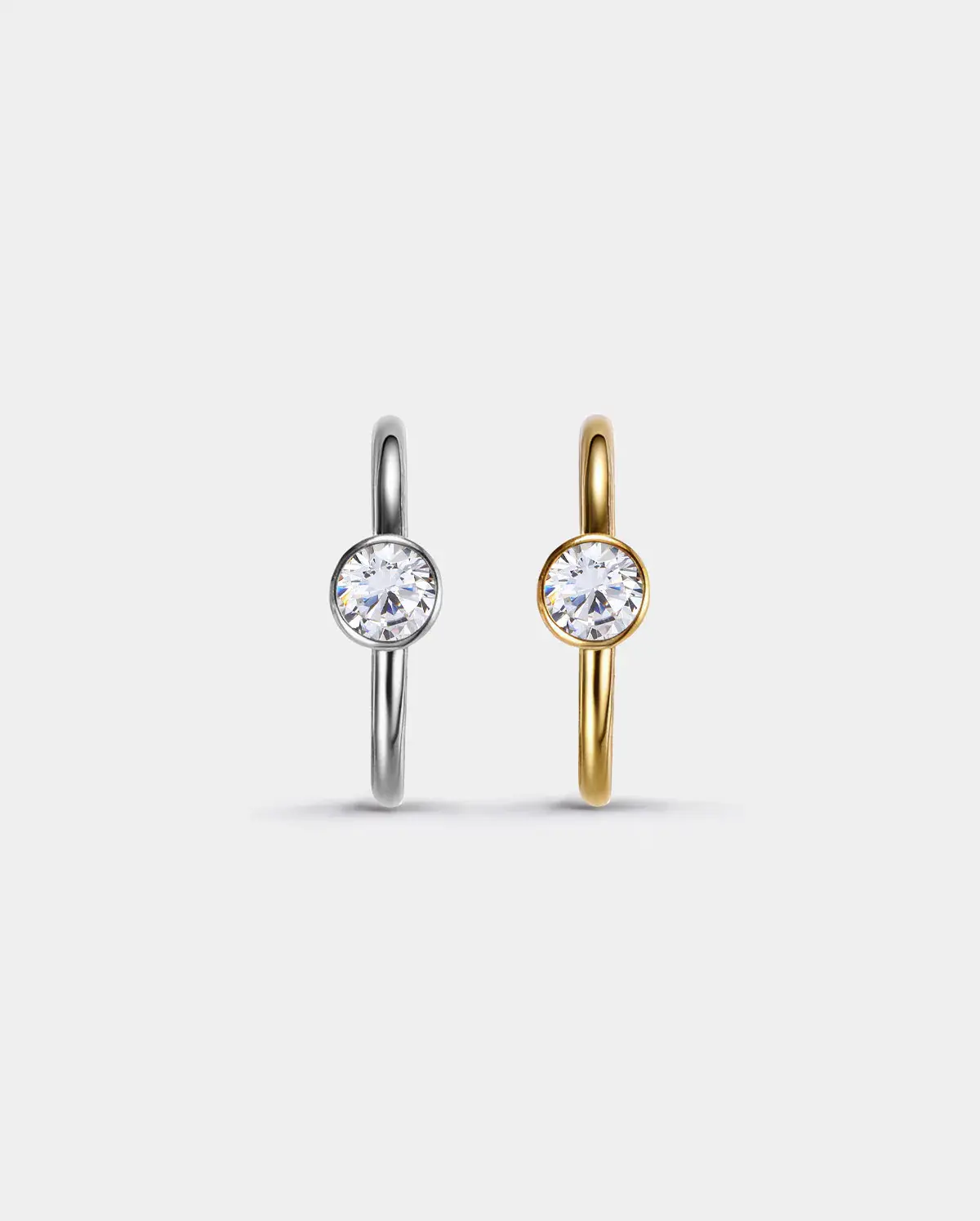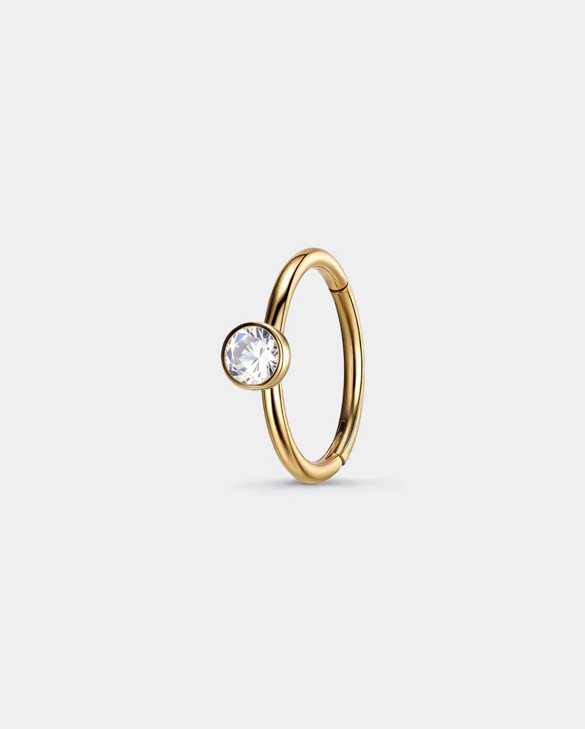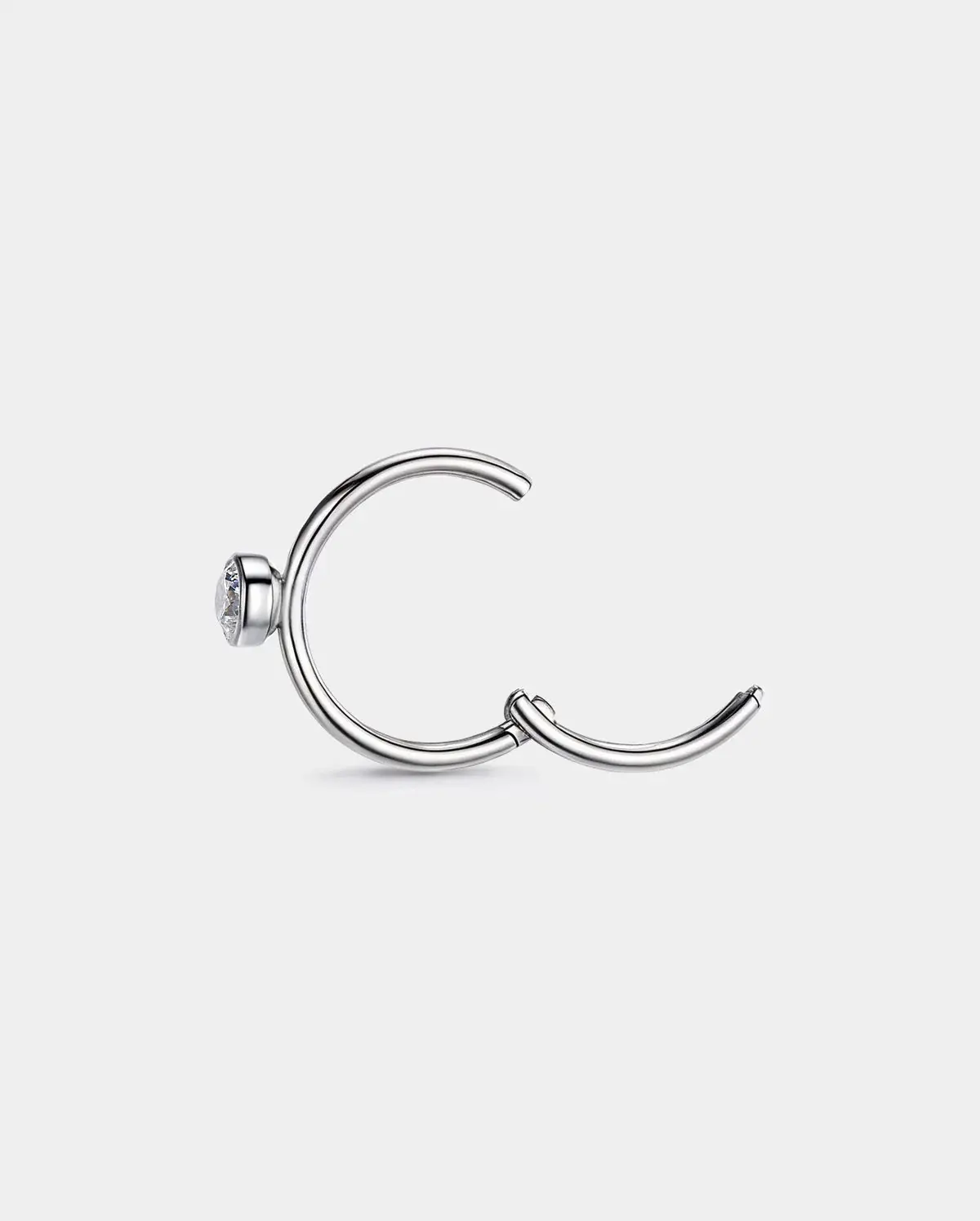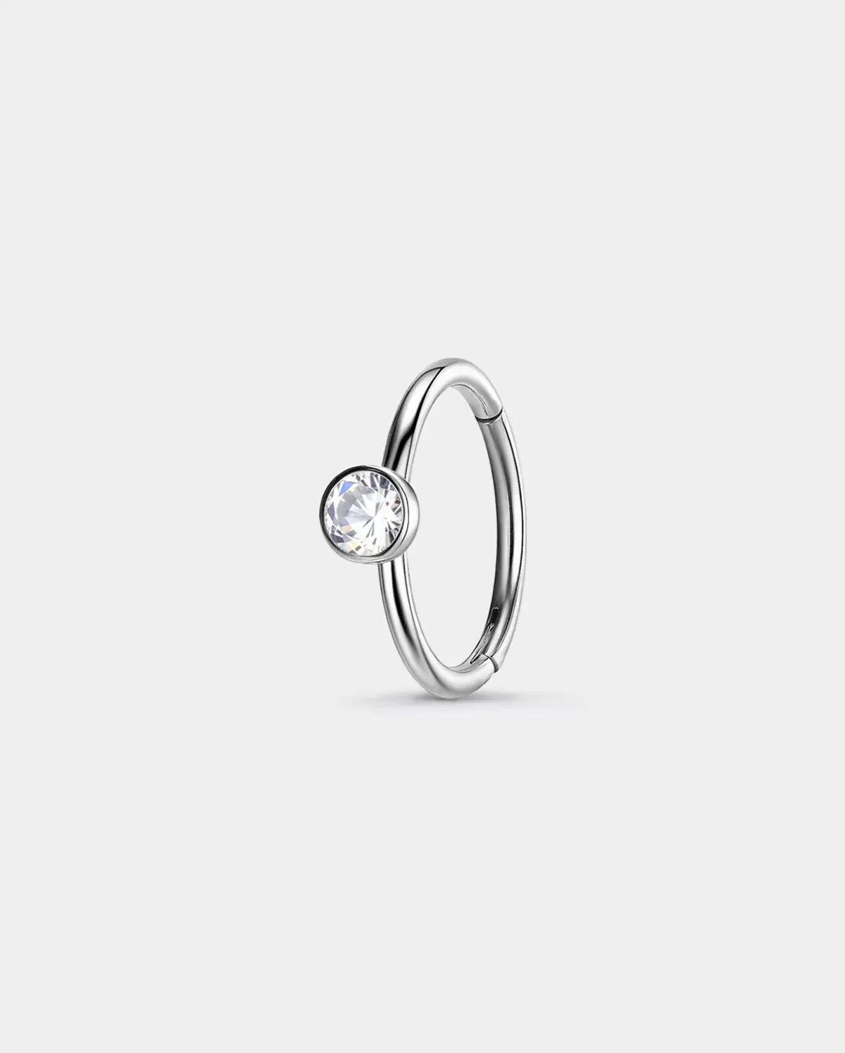 The minimalist segmentnose hoopwith a brilliant bezel-set CZ—designed foreffortless everyday shine.The slim316L stainless-steel bandand smooth closure createa chic, modern look perfect for nostril piercings. Lightweight, durable, and fashion-forward, this piece addssubtle sparkle without overpowering your style.