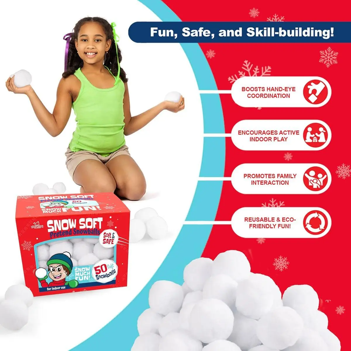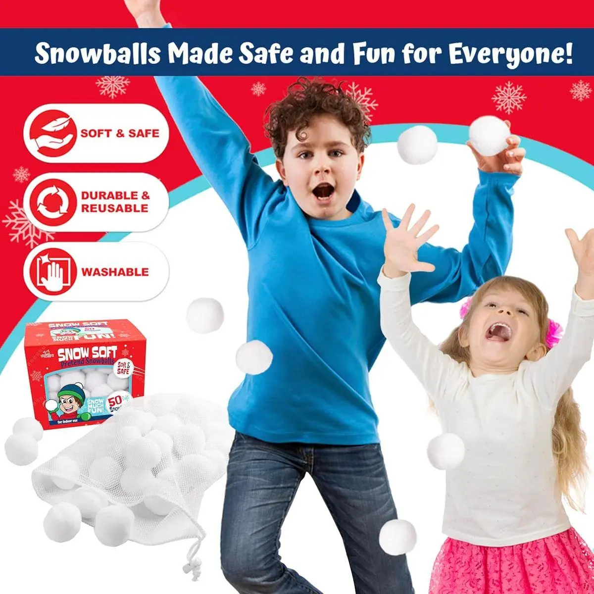 Snowball Winter Toys are Made of Soft and Safe Plush Material, Snow Toys are Durable and Reusable Suitable for All Ages Providing Fun Playtime for Kids Ages 4-8, 8-12 Teens and Adults Indoors or Outdoors