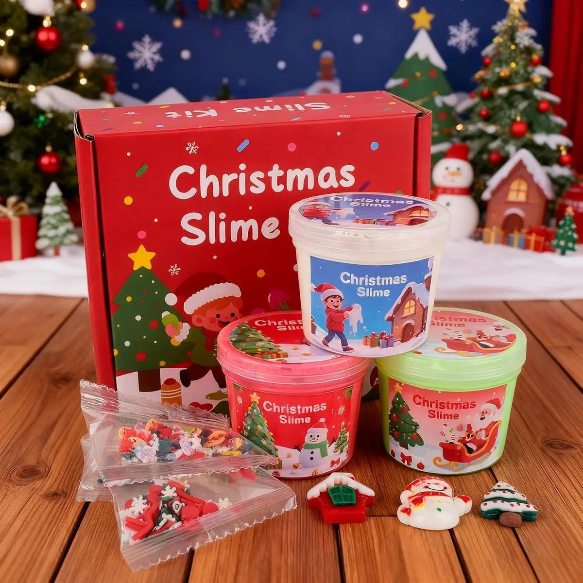 ⭐【 COMPLETE ALL-IN-ONE SET, READY TO PLAY】You will receive a complete gift box set containing 3 jars of slime, multiple clay slices, stickers, and charm.open the box and embark on a festive creative journey, enjoying hours of fun.