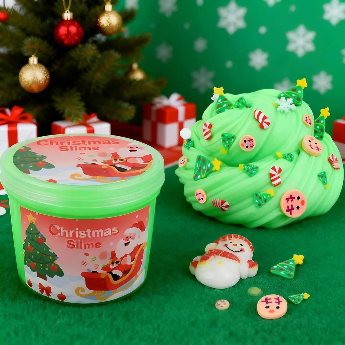 🎄【IMMERSIVE CHRISTMAS THEME SET】This slime set includes 3 jars of butter slime in distinct Christmas colors: Classic Christmas Red, Pine Tree Green, and Snow White. Each jar comes with unique festive accessories, including delicate Christmas polymer clay slices, festive stickers, as well as Christmas tree, snowman, and house accessories, instantly immersing the play experience in a joyful Christmas atmosphere.