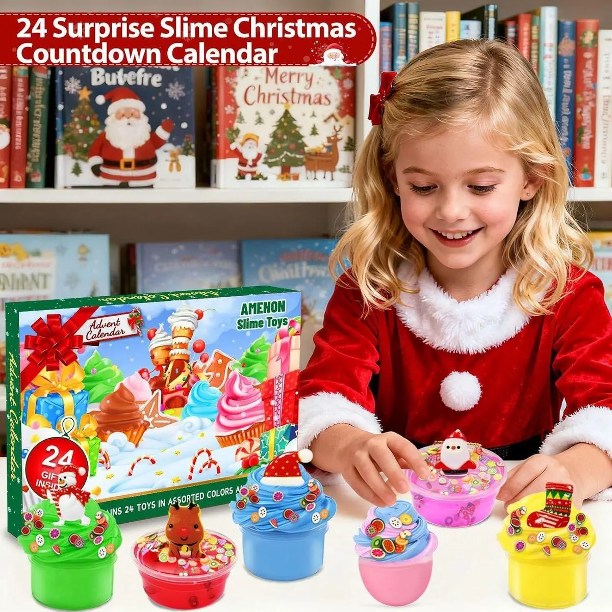 Slime Kit Toys: Children can roll, pull, squeeze or fold these soft slime toys, and make styles with your kids' creativity and imagination; Relieve your stress and bring hours of fun. Christmas Countdown Calendar toys for kids