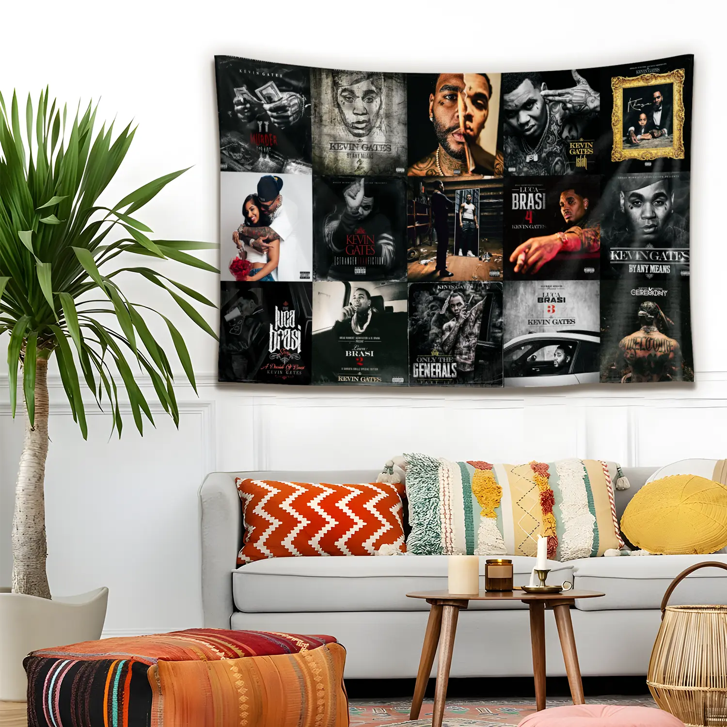 5. Vintage Kevin Gatess Album Collection Tapestry, Southern Hip-Hop Wall Hanging Decor, Retro Rap Music Art Banner, Bedroom Studio Wall Art, Gift for Fans
