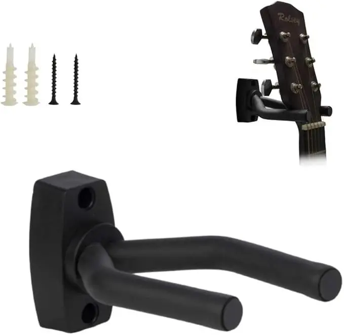 Guitar Wall Mount Hanger, Guitar Hanger Wall Hook Holder Stand Black Display with Screws - Easy to Install - Fits All Size Guitars, Bass, Mandolin, Banjo, Ukulele