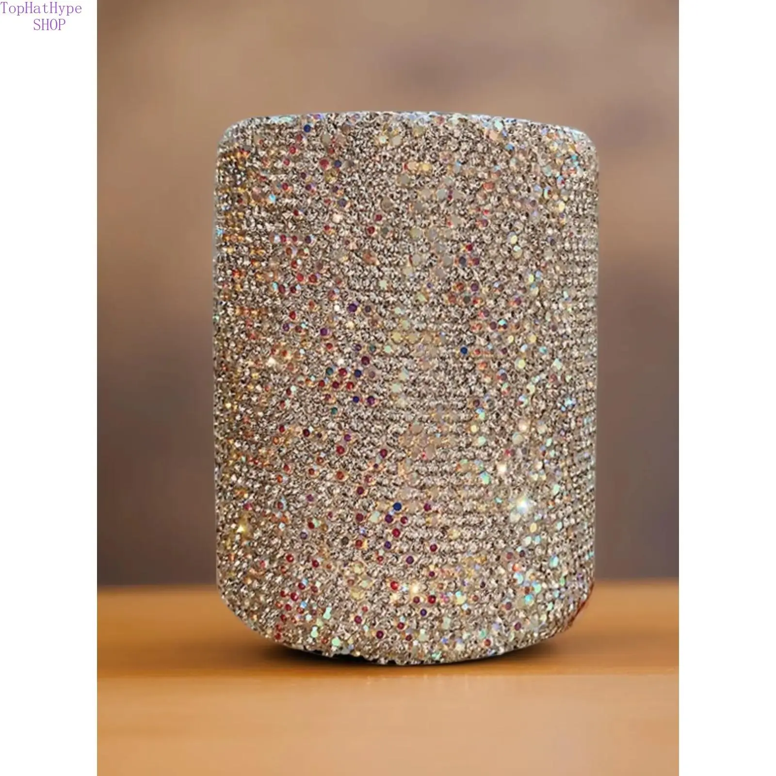 Luxury Round Rhinestone Storage Bucket, Bling Desktop Pen Holder for Office, Exquisite Sparkly Makeup Brush Organizer, Elegant Decorative Desk Accessory for Home, Office and Vanity