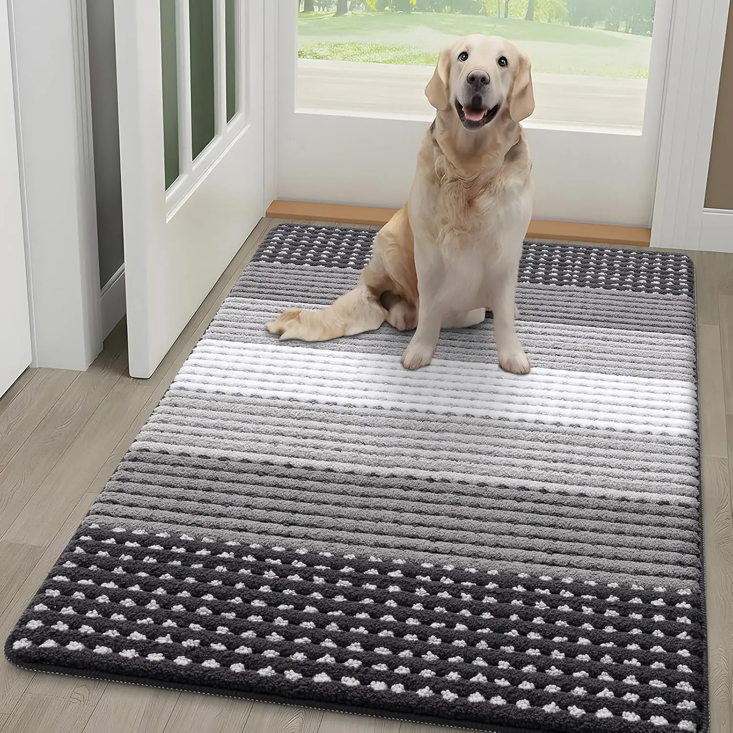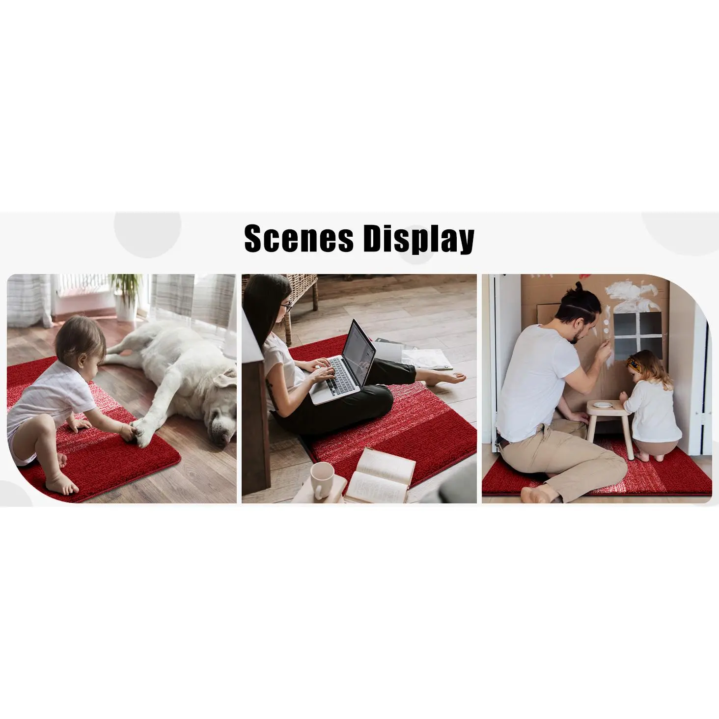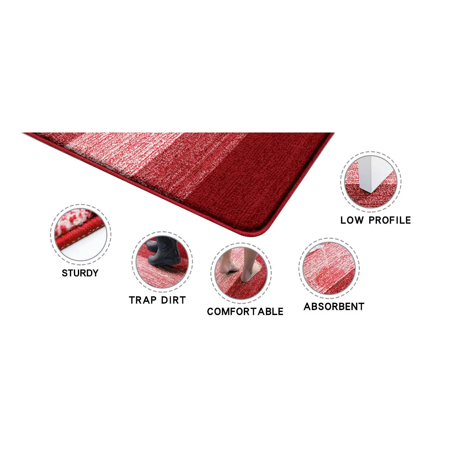 PLEASE NOTE: Since doormats are folded packed, it is normal that items may arrive with creases.Don't worry, it will not affect the use.Please machine wash flat for 2-3 days, patiently wait for wrinkles to recover, or use a hot iron on a wet towel, wrinkles will disappear completely.ABSORBS MOISTURE AND DIRT:Kitinjoy indoor doormats effectively trap water, mud, and dirt.Countless polyester fibers keep indoor areas clean, and dry.Even rain, snow, or muddy weather can protect the floor from spills or stains.STURDY & NON-SLIP: These indoor doormats are made of good quality polyester microfiber with sturdy braided edges for more durabilityNon-slip TP Rubber keep them firmly in place and are able to prevent trips and falls.Make sure the floor is clean and dry before placing.LOW PROFILE & VERSATILE: The 0.4 inch thickness makes our doormat suitable for most entrances.Doors can be opened and closed smoothly without fear of tripping.The fashion design and multiple options can be widely used indoor and outdoor, kitchen, front door, entrance, patio, garage, laundry, bathroom, etc.EASY TO CLEAN: Doormats can be cleaned off with a broom or vacuum cleaner, or using a vacuum cleaner.They can also be machine washed separately in cold water with a mild detergent, dried, or dried through low temperature.Do not use bleach or fabric softener.