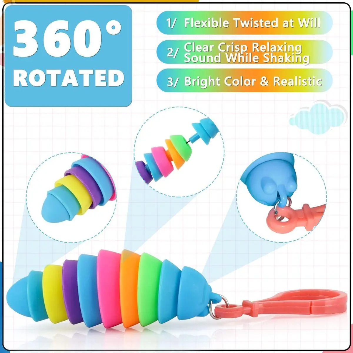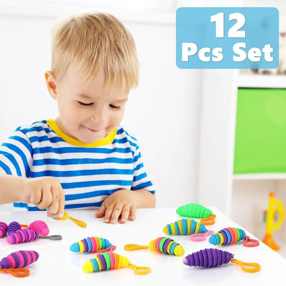 【Quality】Fidget Slug toys are made of non-toxic, BPA-free plastic, safe for kids and your family. A variety of bright colors, 12 packs. The interior is connected by elastic cords, which can be properly pulled.