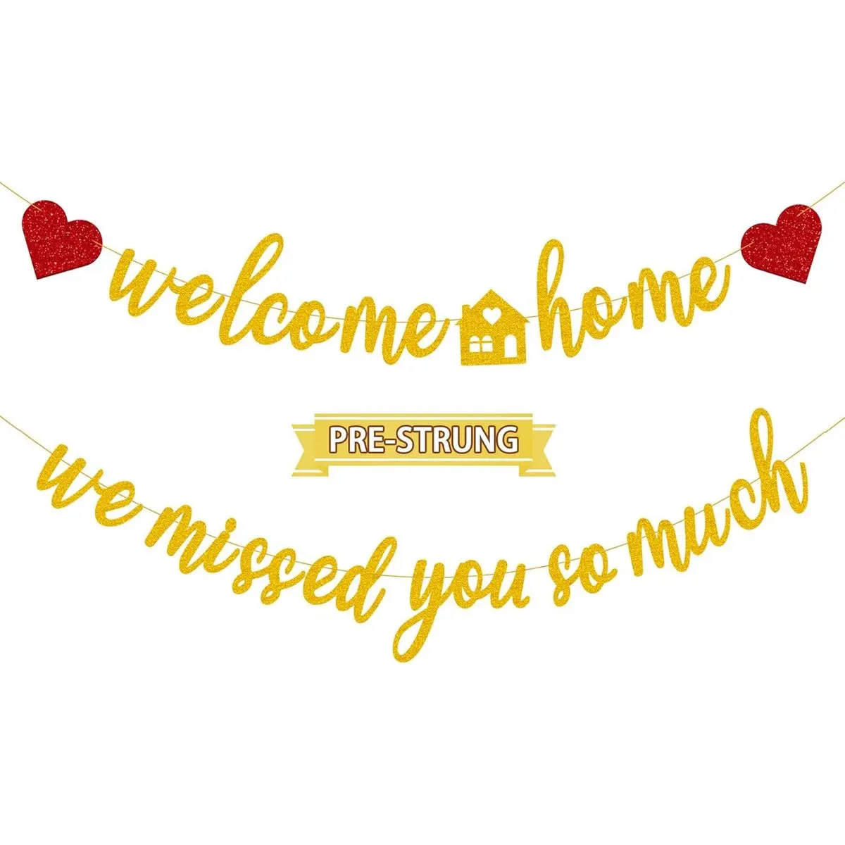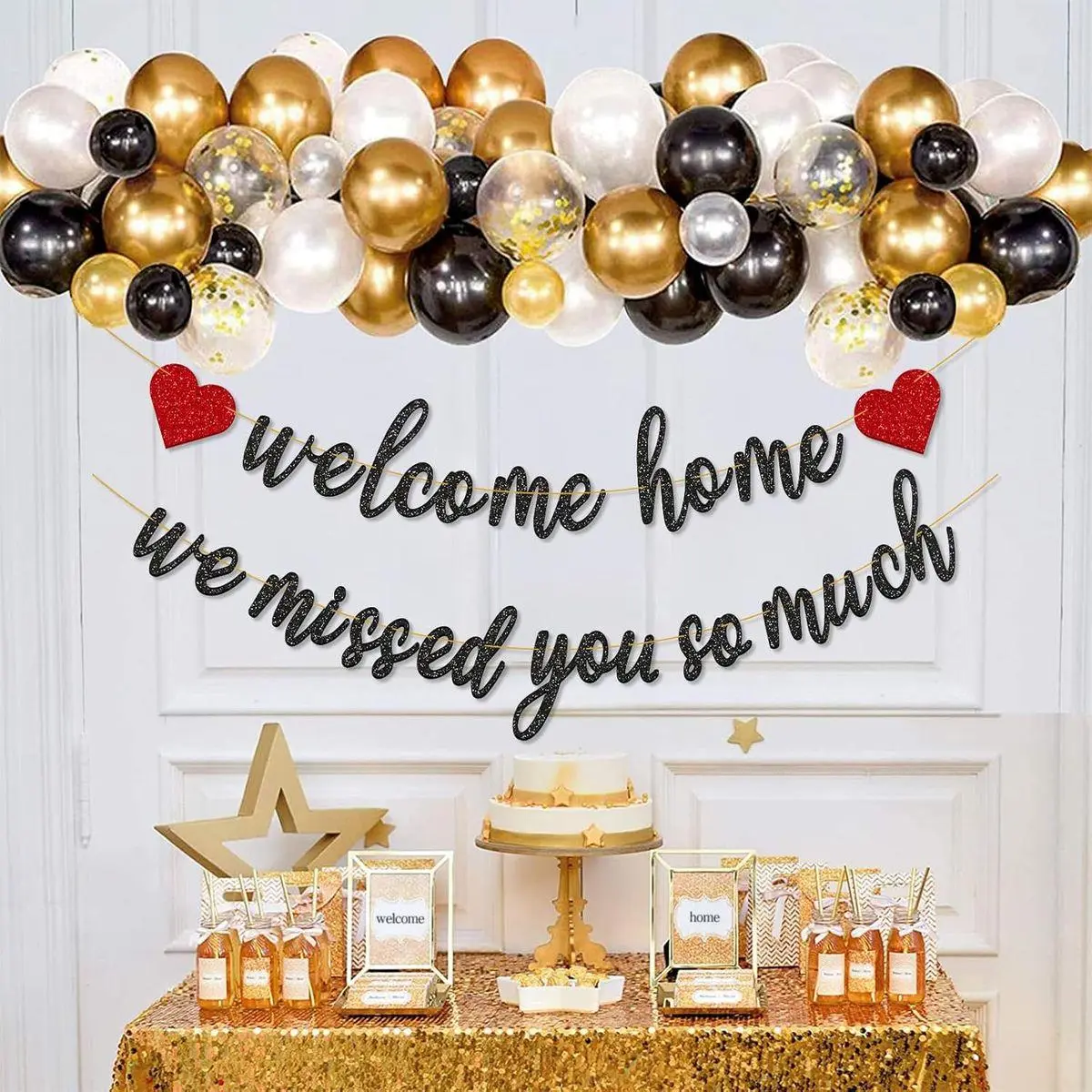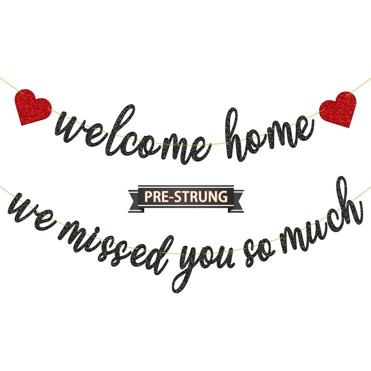Package Included - 1 set of black welcome home red heart banner, 1 set of black we missed you so much banner