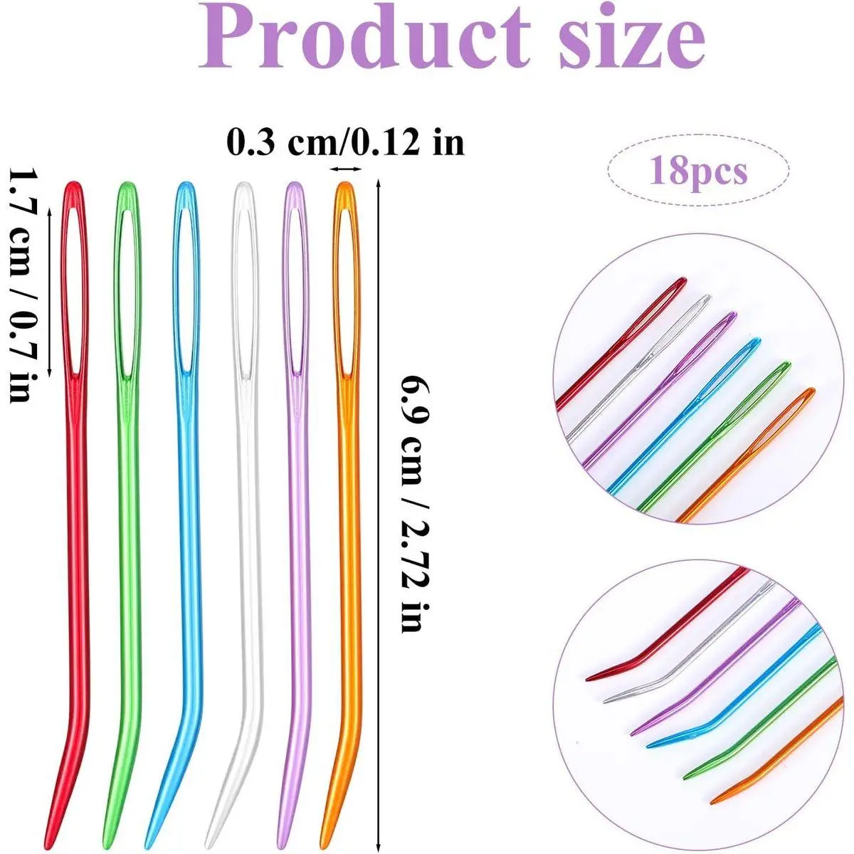 【Package Included】: You will get 18 curved needles in 6 different colors. Yarn needles are practical, safe, and easy to carry. The size of the curved-tip tapestry needles for yarn is about 6.9 cm/2.72 inches. This quantity is enough to meet your sewing needs and replacement needs.