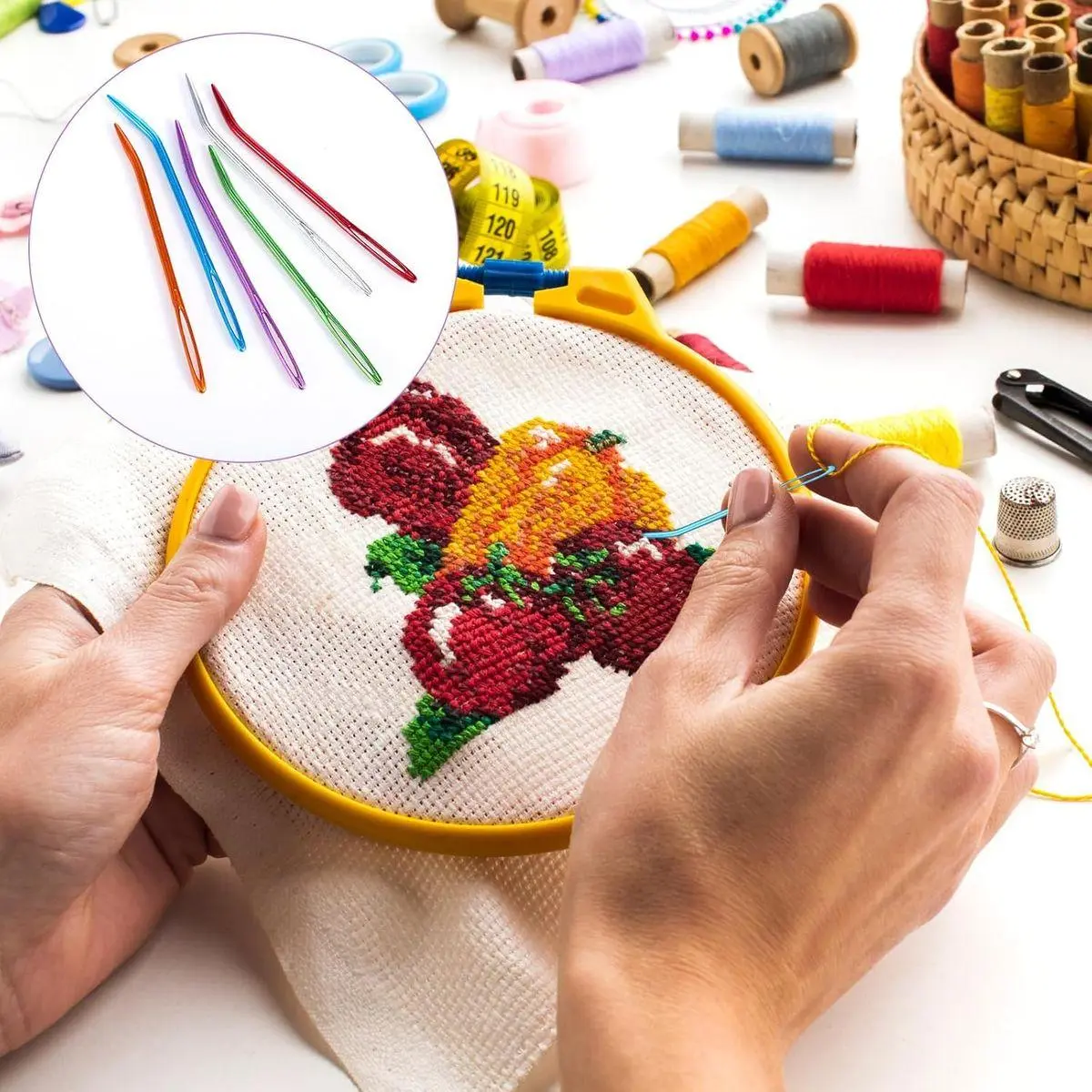 【Curved Tip Tapestry Needle】: Compared with straight needles, the curved tip of the tapestry needle makes it easier to hook under the needle. Strong yet lightweight, it makes threading the needle and winding the thread to hide the thread tail easier.