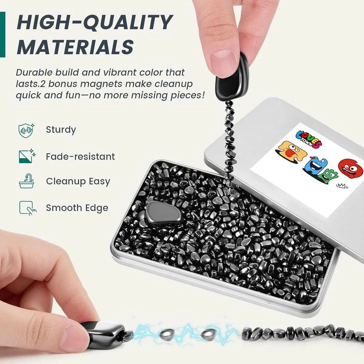 High-quality Materials: Made of ferrite magnets, 550PCS black magnetic beads are strong, sturdy, and fade-resistant for lasting fun. Includes 2 extra large magnets that unlock more stress-relief play options and make bead cleanup easy to prevent loss