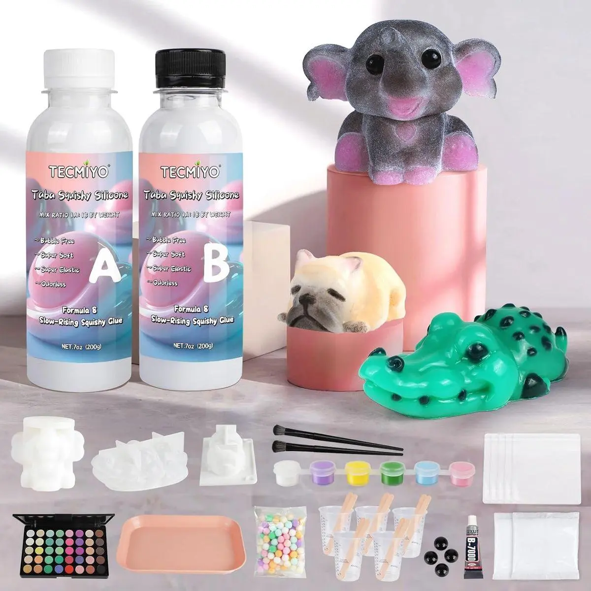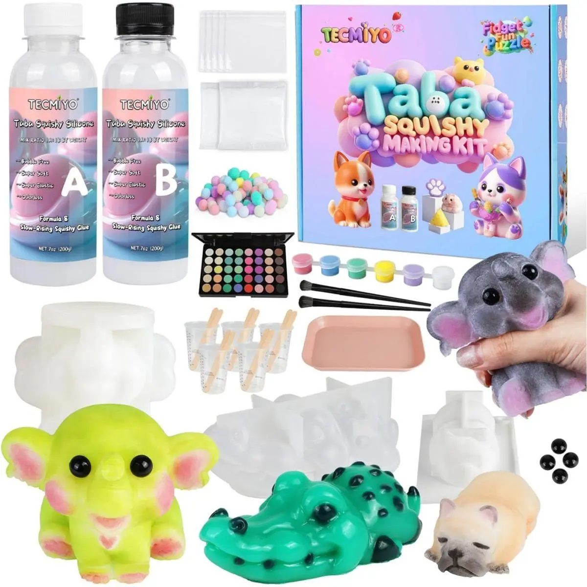 Large Animal Squishy Molds: 3 unique and lifelike animal moulds, including an elephant, crocodile, and mini dog. Every high-definition mold produces detailed, professional-quality Taba-squishy creations
