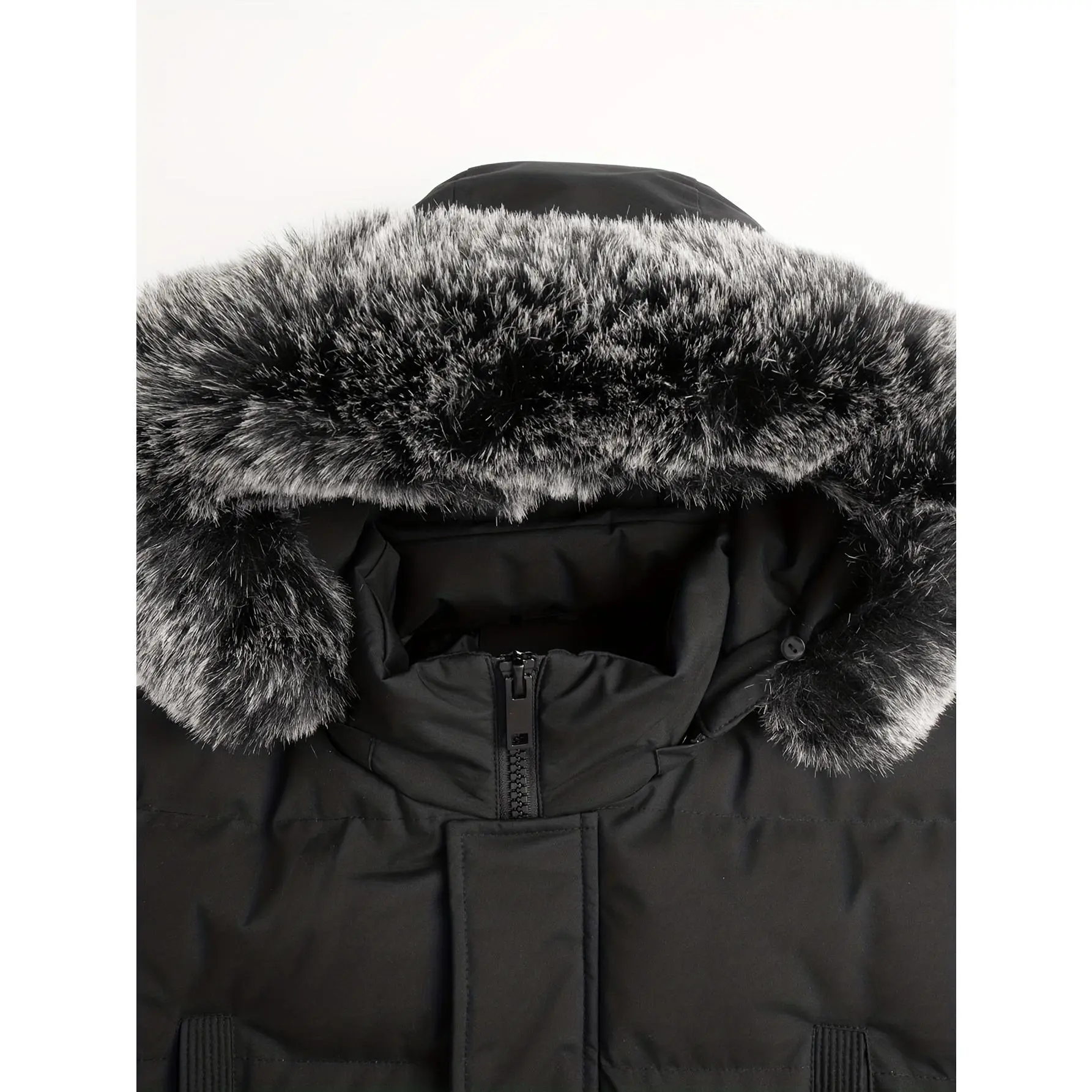·Adjustable Hood with Faux Fur Trim: Features a structured, insulated hood with a plush, detachable-style faux fur trim and secure drawstring toggles, letting you customize your fit and block out wind and snow.