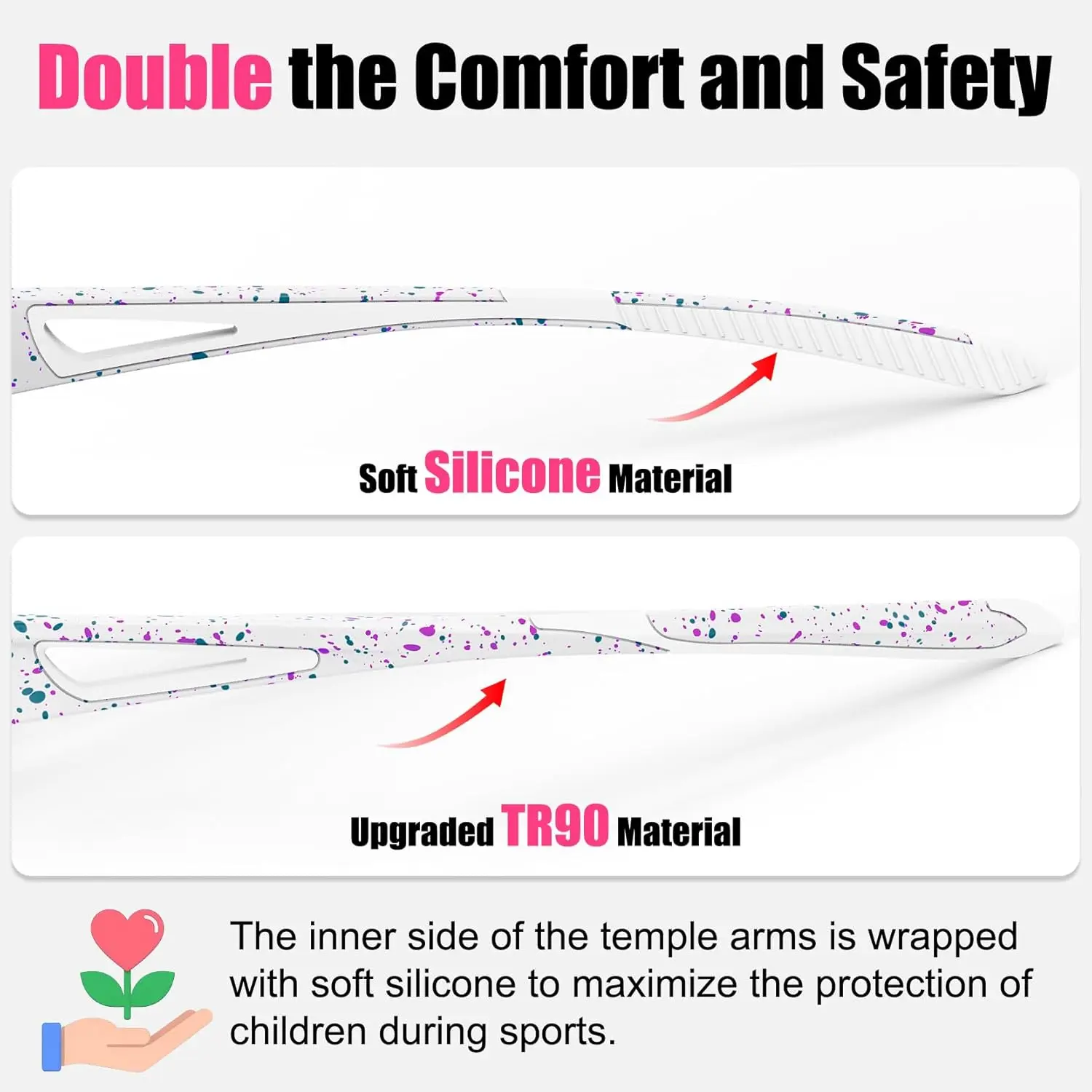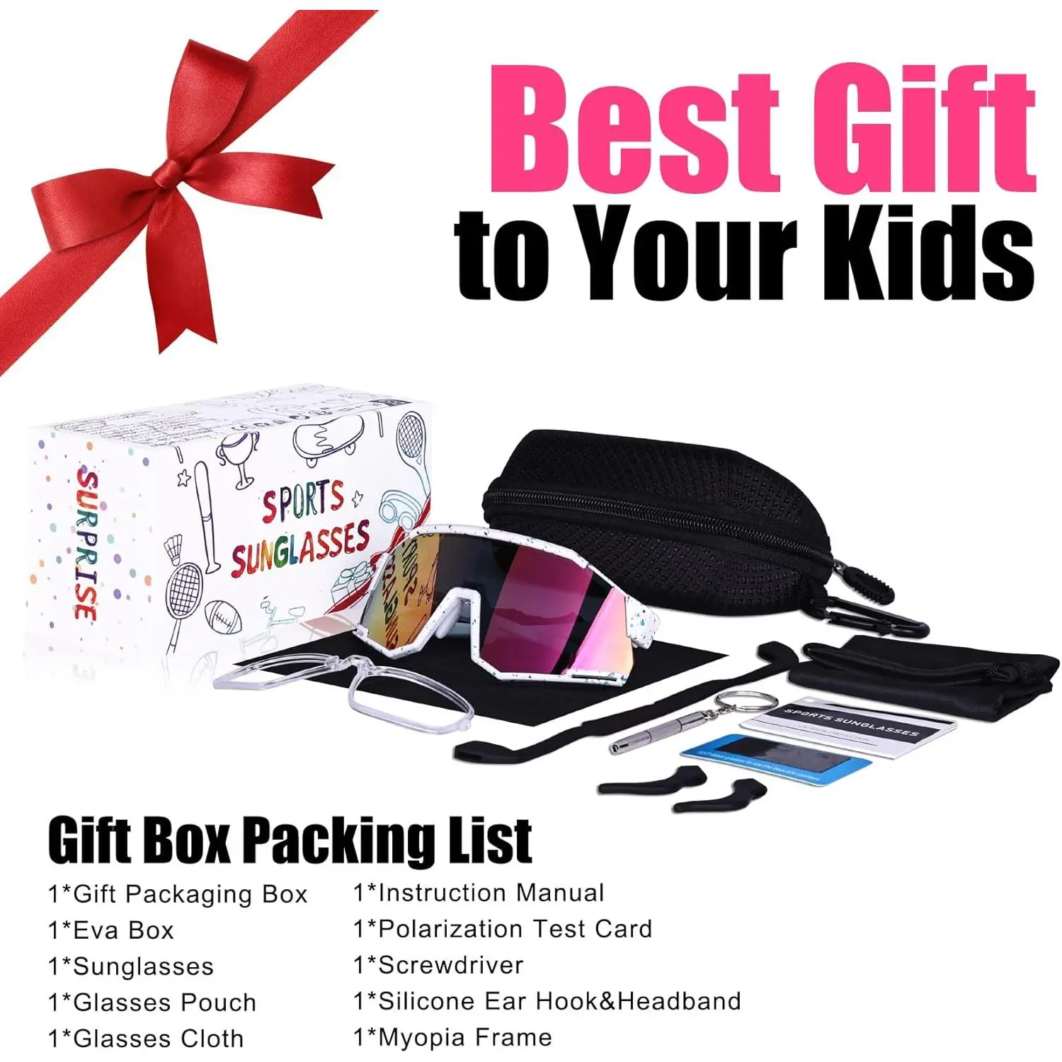 Polarized Kids Sunglasses, Youth Baseball Sunglasses Ultra-Light TR90 Frame UV400 Sports Cycling Glasses for Boys Girls