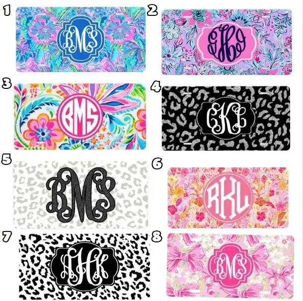 Preppy, Leopard Personalized License Plate, Custom Car Tag for Women, Name Car Tag, Floral License Plate Frame, Car Coasters, Personalized