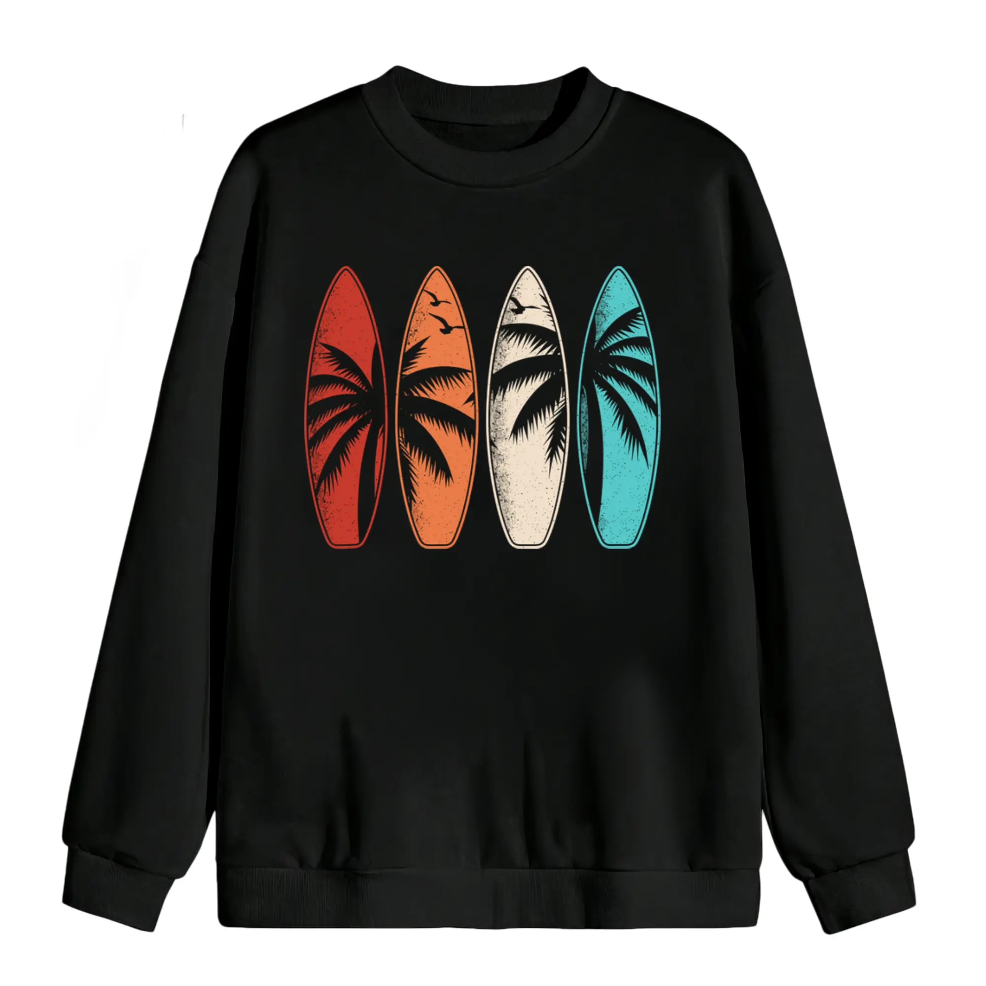 Beach Surfboard Surf Men's Long Sleeve Tropical Hawaiian Sweatshirt