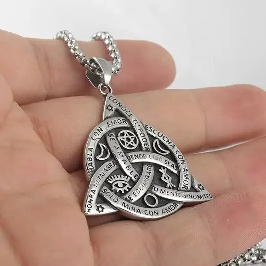Discover the elegance of the Stainless Steel Triple Goddess Triquetra Necklace. This Celtic Knot Irish Christian Trinity Knot Pendant is a stunning amulet for women. Perfect for those who appreciate symbolic jewelry, it combines tradition with style. The necklace features a triquetra design, symbolizing the Triple Goddess. Ideal for everyday wear or special occasions, it adds a touch of mystique to any outfit.
