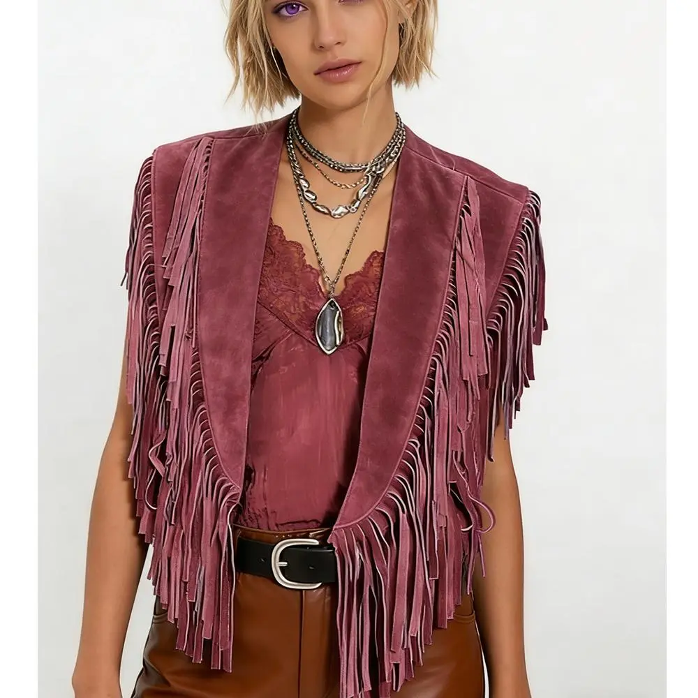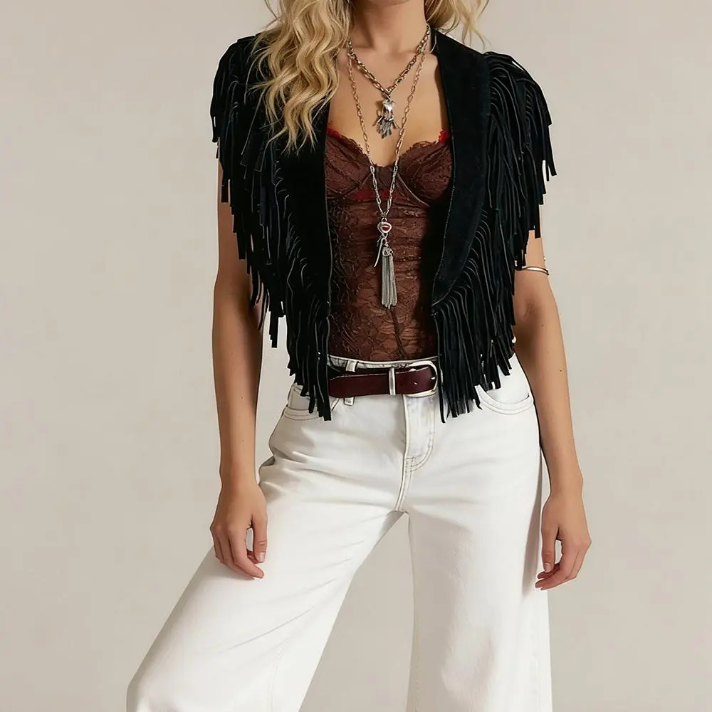 Women's Tassel Vest Jacket Open Front Stylish Solid Color Casual Sleeveless Tassel Collar Size (cm) One Size Length: 39.5 Shoulder: 40 Size (inch) One Size Length: 15.55 Shoulder: 15.75 Specifications: Material: 100% Polyester Color: Multi-Color Size: One Size Gender: Women Package Contents 1 * Tops Note: 1. Due to manual measurement, there may be small errors in size. 2. Depending on the computer monitor used, colors may a little different from actual colors. Promise If the product has any quality problems, please let us know and we will help you solve it as soon as possible.