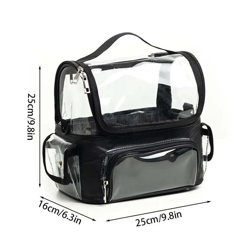 SEE-THROUGH DESIGN:Professional Cosmetic Bag Made of clear, durable PVC+nylon fabric, lets you instantly locate your makeup brushes, palettes, and tools—no digging needed. Perfect for makeup artists on-the-go or beauty lovers organizing their collection.