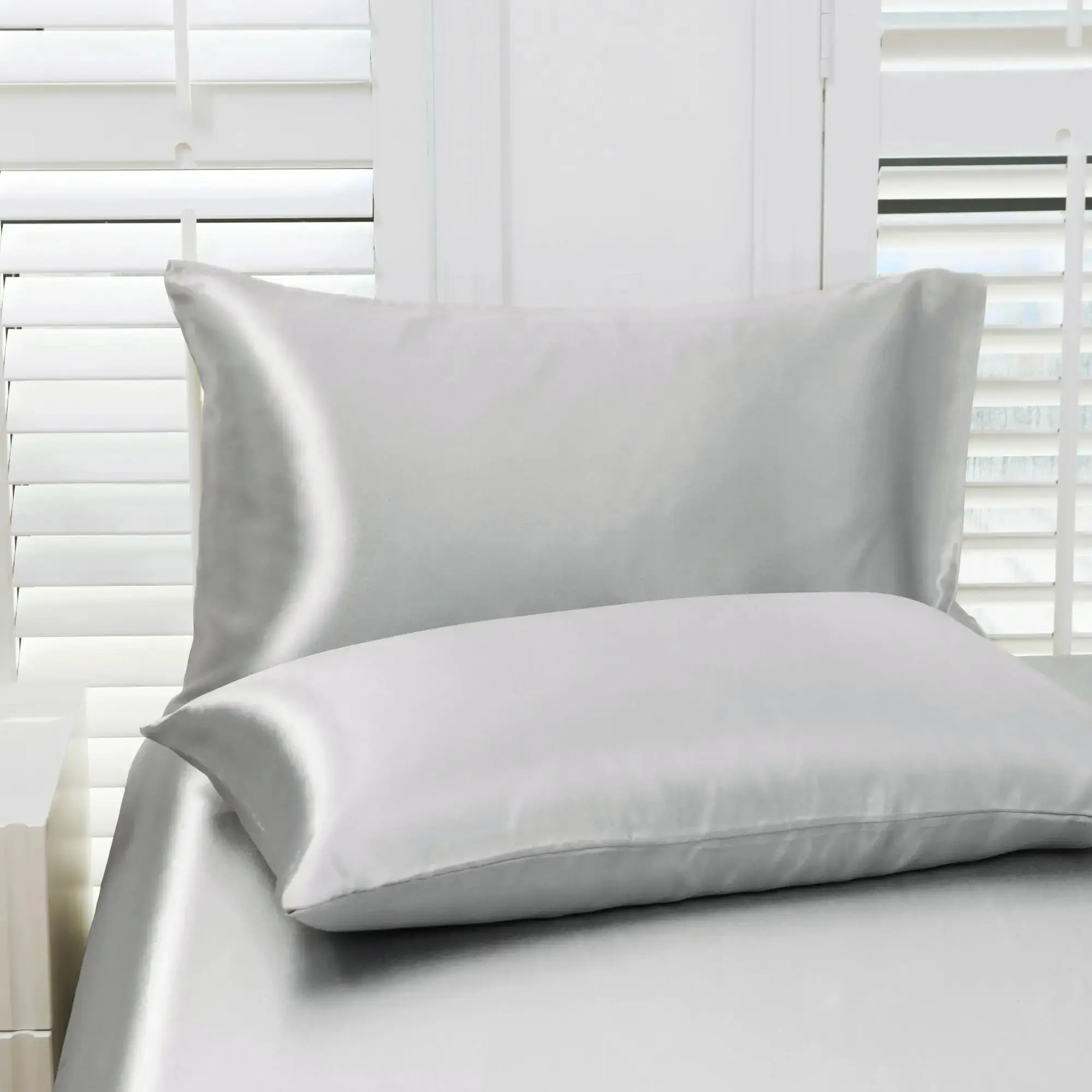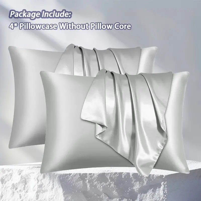 Set of 2 solid-color satin pillowcases, modern and minimalist, soft and comfortable bedding perfect for home bedrooms and dorm rooms. These cool, silky-satin pillowcases are a carefully curated must-have—sold without filling.