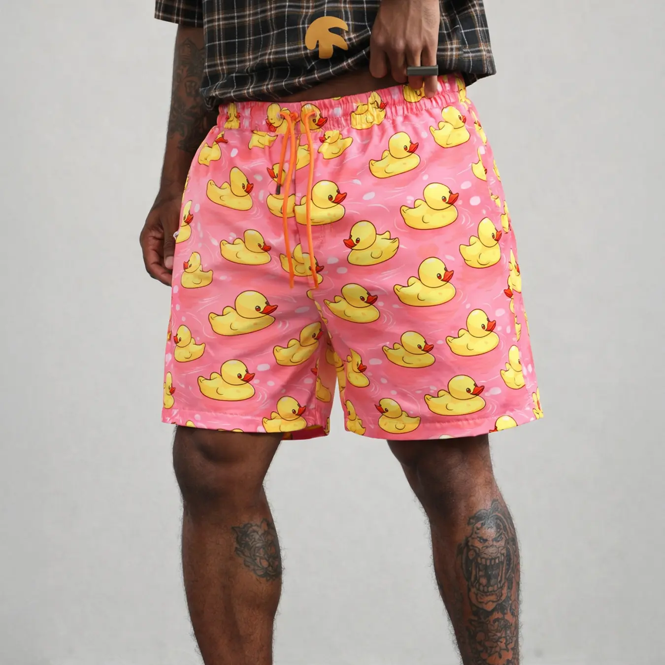 Featuring an all-over print of classic "Little Yellow Duck" IP elements, these shorts exude a cute, cheerful charm. Say goodbye to basic styles; these shorts radiate vibrant summer energy, naturally drawing the eye. Perfect for vacation photos, they guarantee stunning shots and make you the center of attention. 🐥