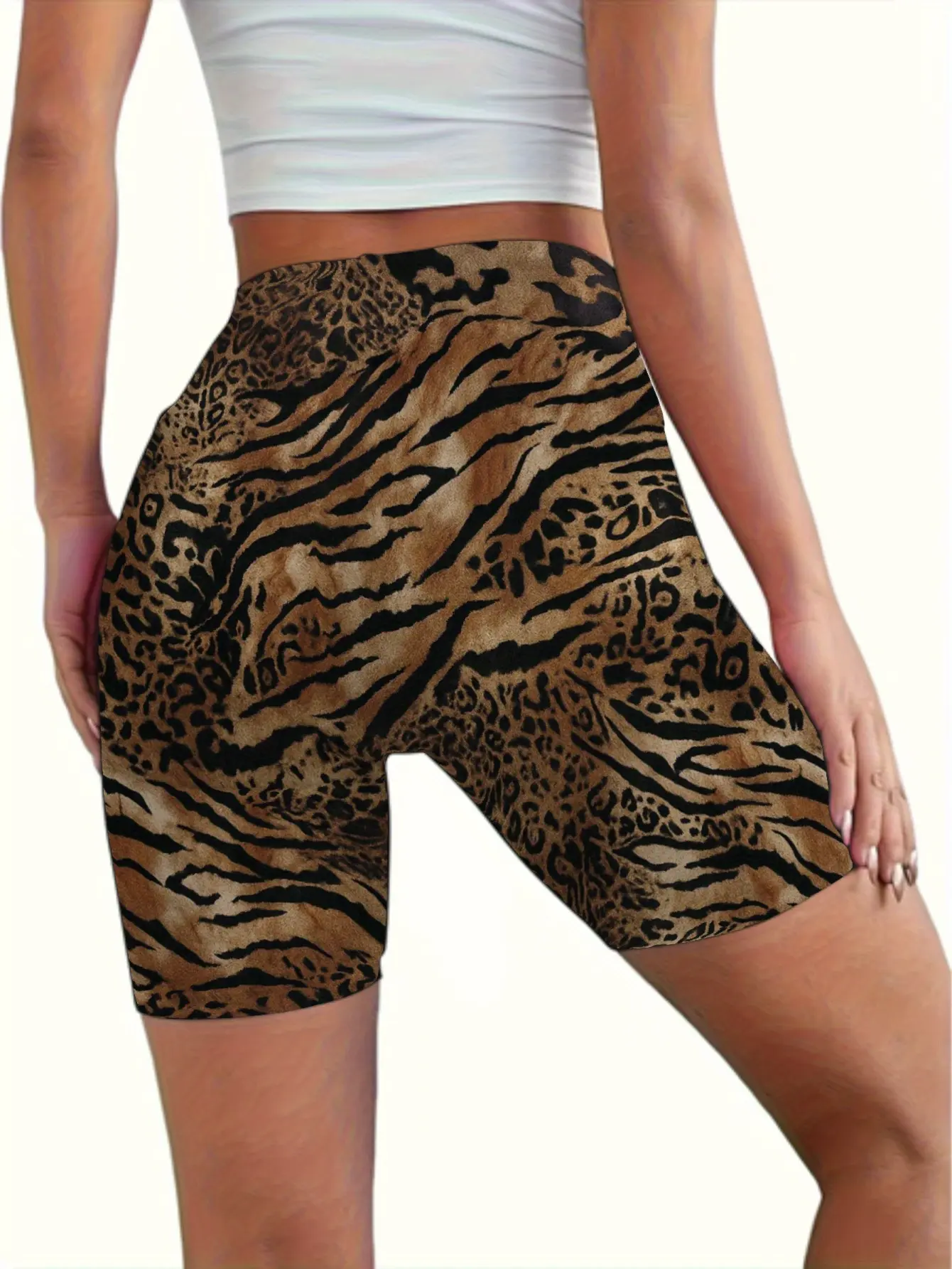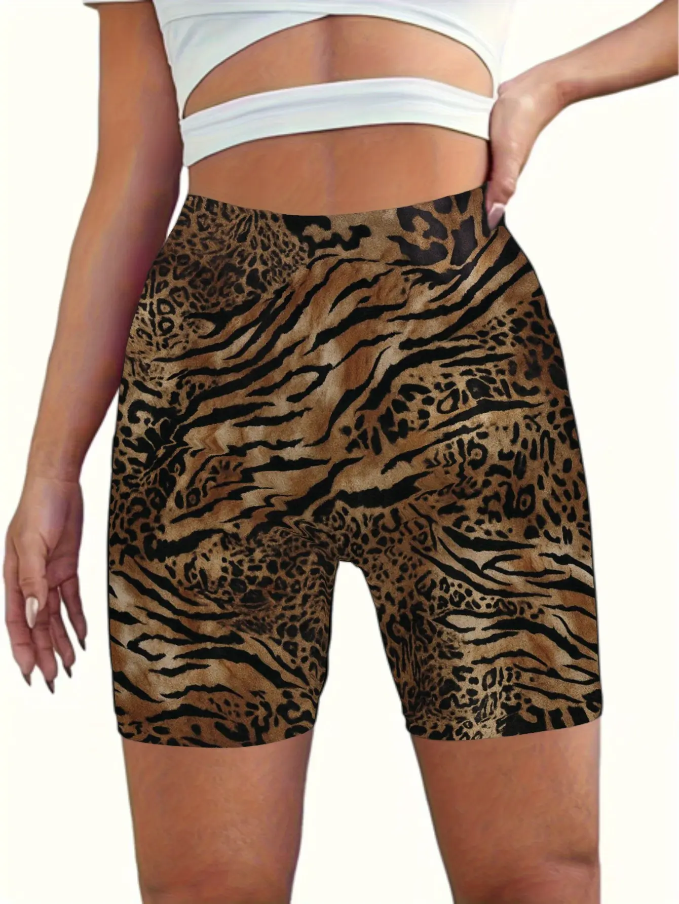 Women's Plus Size High-Waisted Yoga Shorts, Leopard Print - Comfortable Stretch Fabric, Suitable for Gym, Training, Sports, and Casual Wear, Suitable for All Seasons, High-Waisted Yoga Shorts, Workout Shorts, High-Waisted Shorts, Durable Fabric Short
