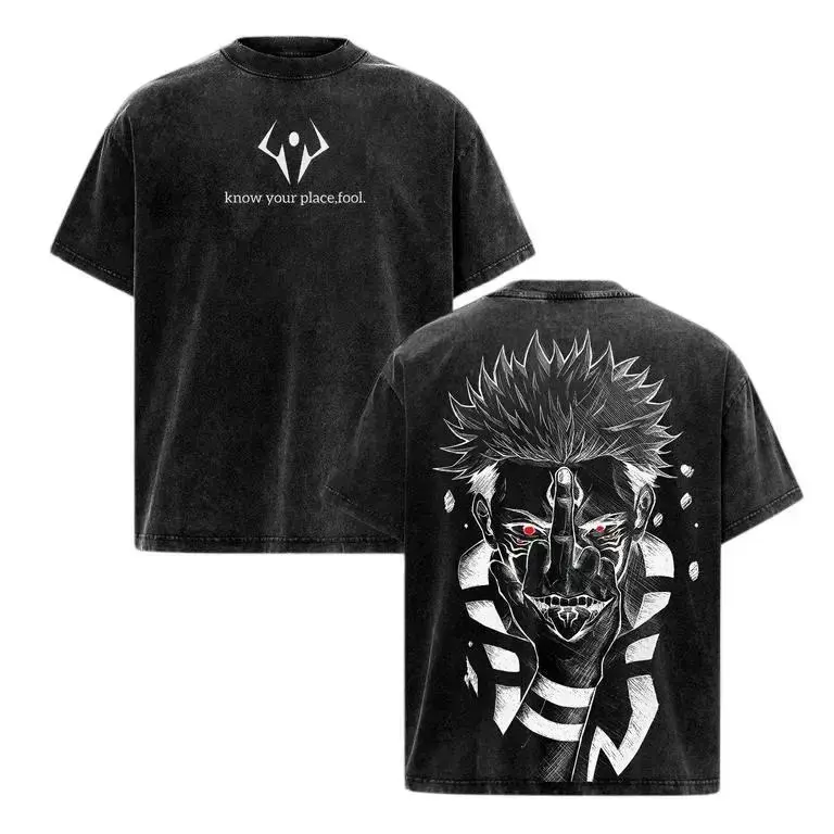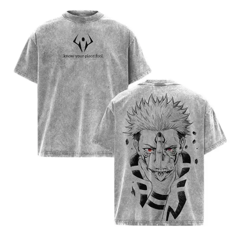 Ryomen Sukuna Jujutsu Kaisen Washed Shirt Anime Oversized Vintage Graphic Tee Heavy Cotton Top Streetwear Menswear JJK Retro Washed Cotton T-Shirt
