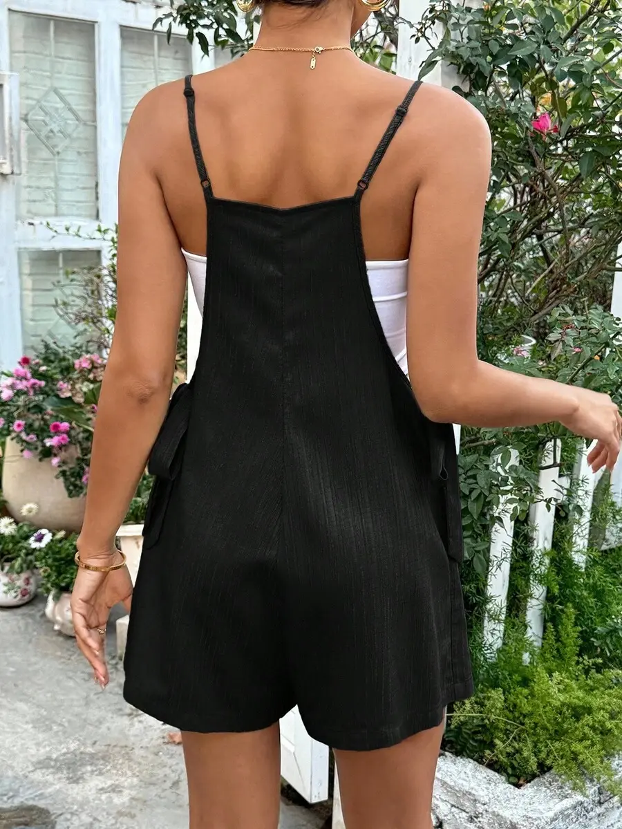 Dokotoo Women's Black One Piece Jumpsuit with Cold Shoulder & Side Pockets Lightweight Polyester Romper for Summer Casual Wear