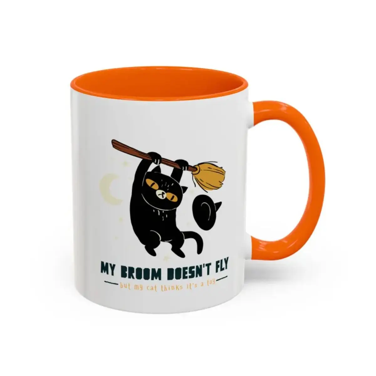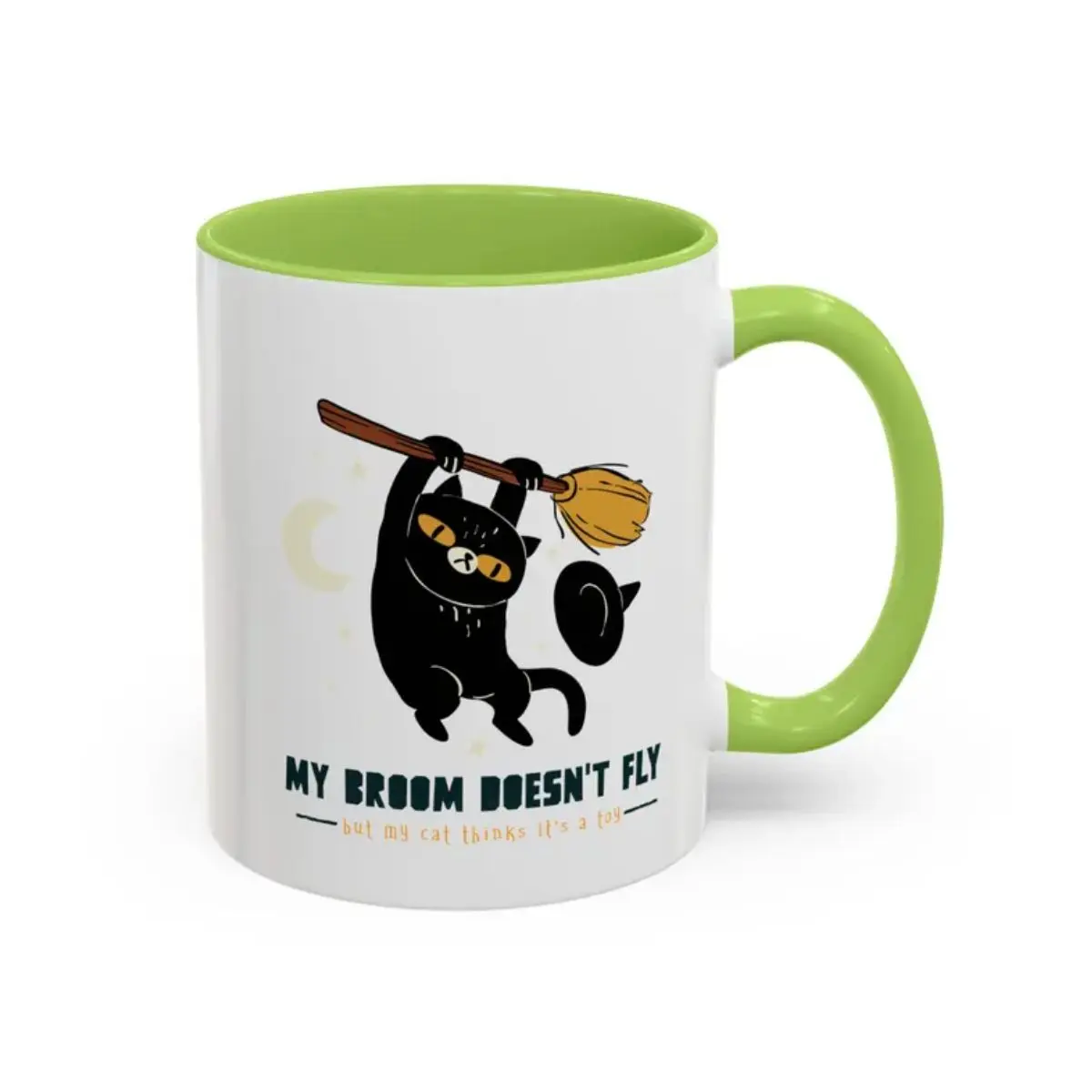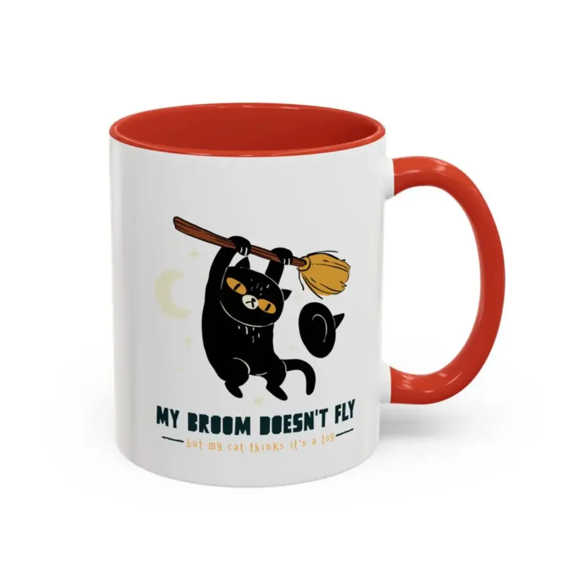 Black Cat on Broom Mug – Witchy Black Cat Coffee Mug, Cute Cat Lover Gift, Aesthetic Coffee Cup, Cat Mom Mug, Dark Humor Animal Mug