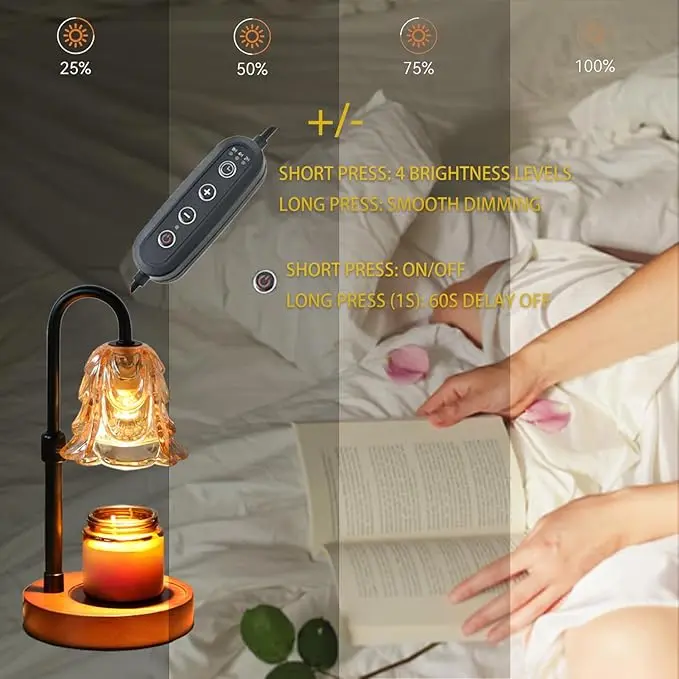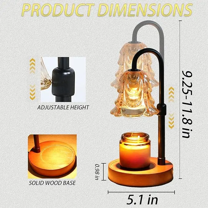 Dimmable Candle Warmer Lamp with Timer, Adjustable Height, 2 Bulbs - Wax Melt Warmer for Scented Wax and Jar Candles, Home Bedroom Decor