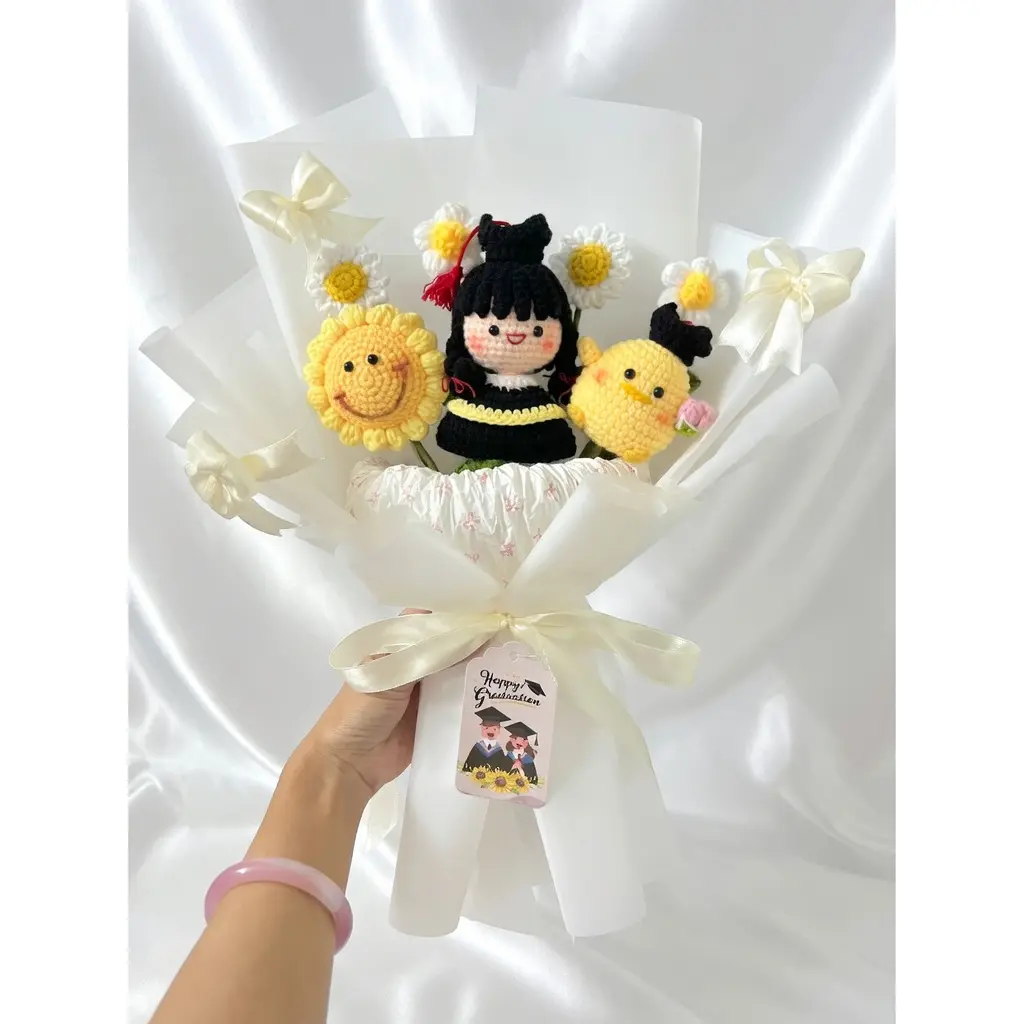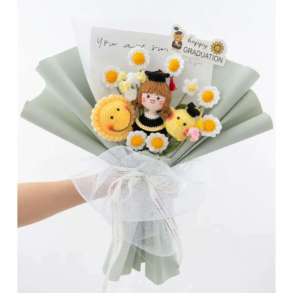 Everyone is buying this handmade crochet graduation bouquet! It's a charming sunflower doll bouquet, ideal for the Class of 2026. This unique gift is sure to delight any graduate. 🌻